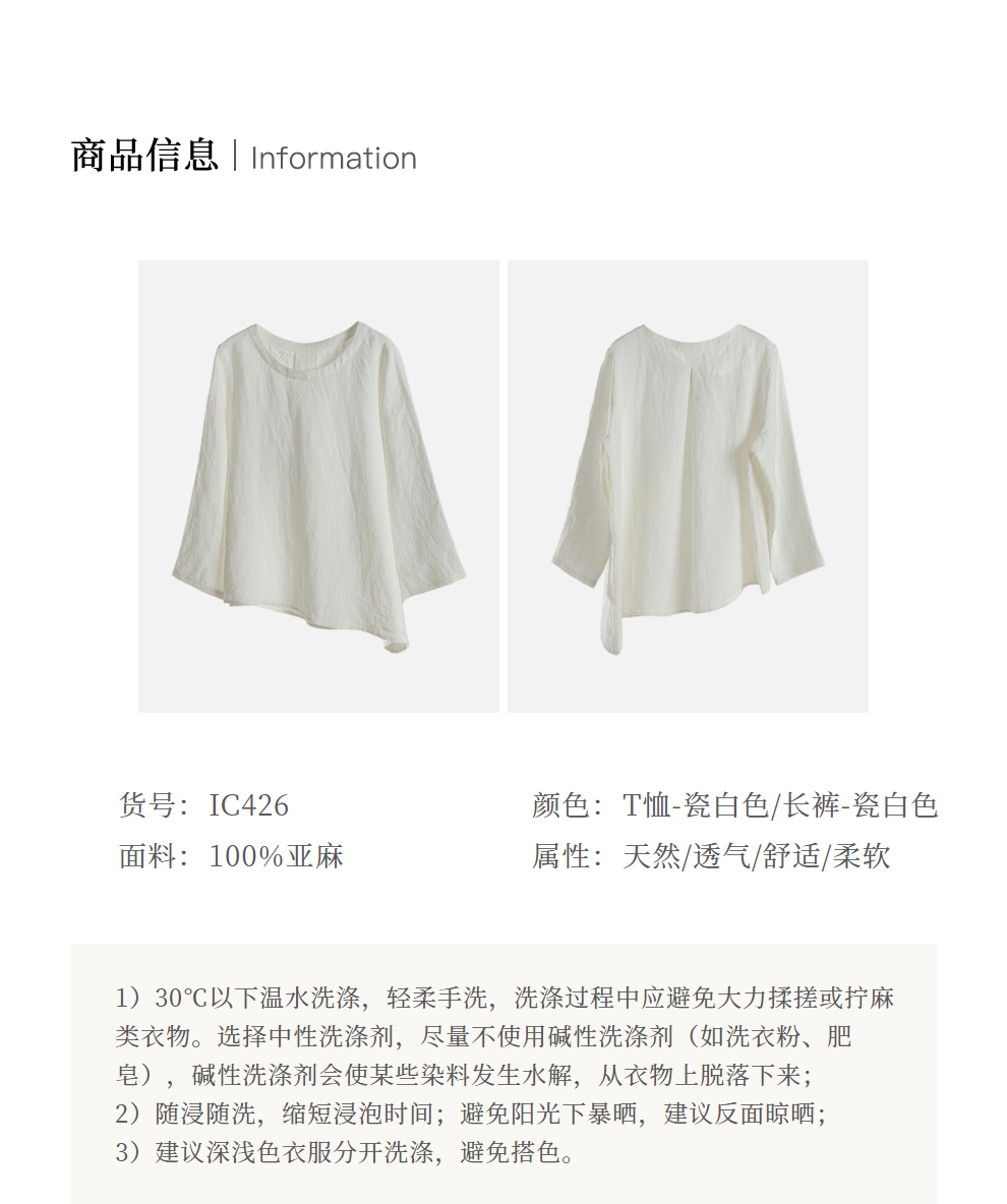 绽放426-427朵/身心灵套装禅服空气干洗亚麻七分袖T恤&双层长裤