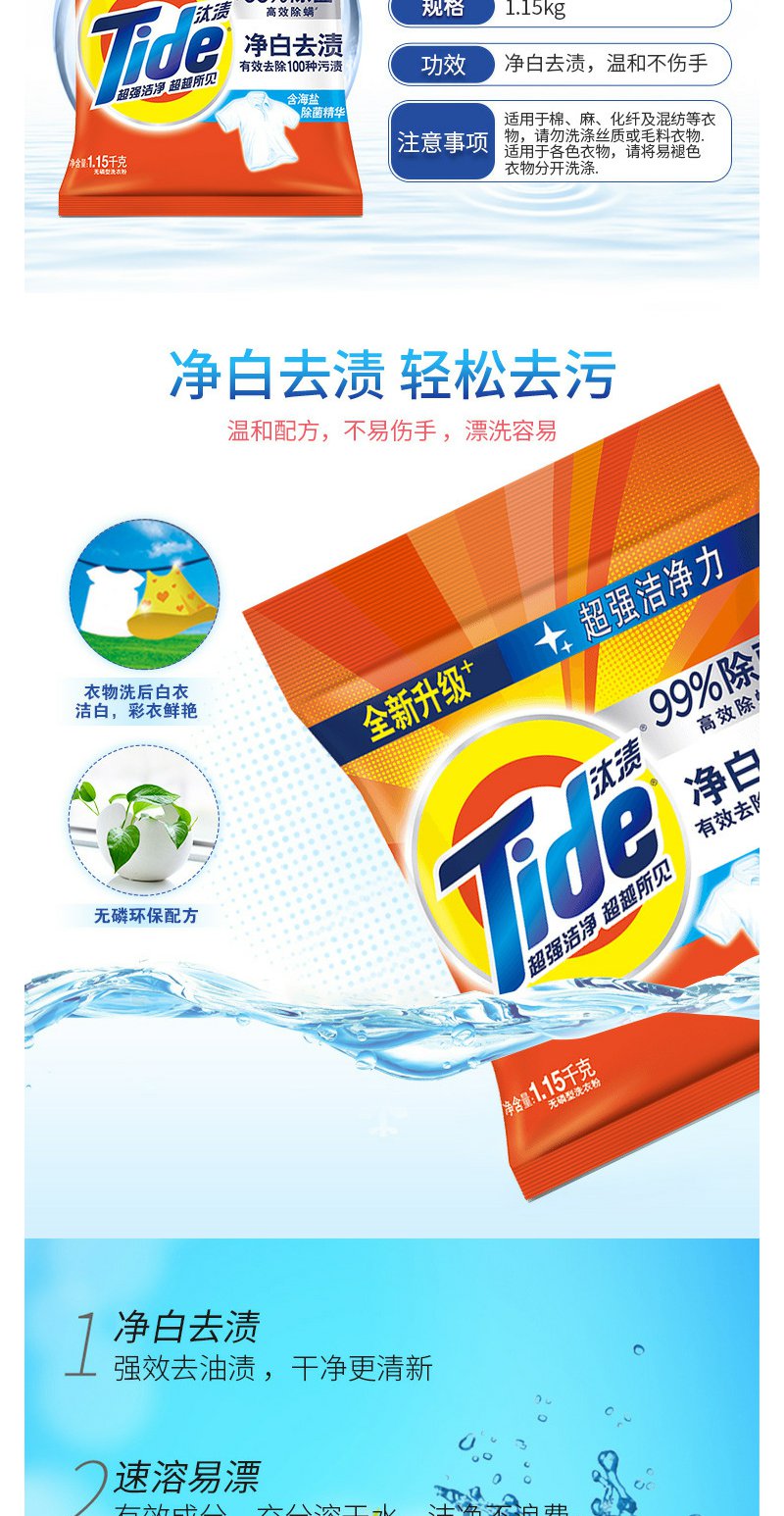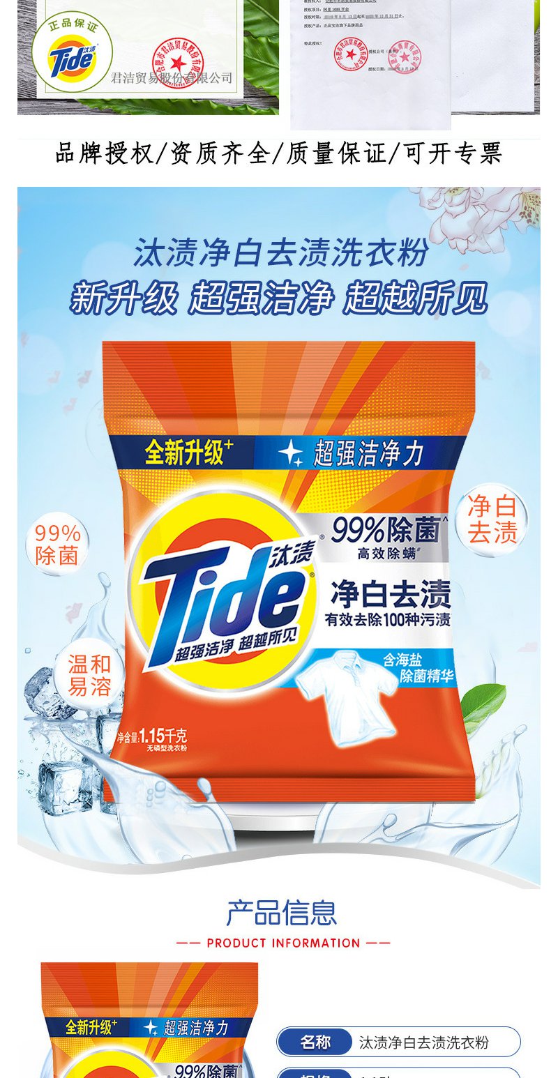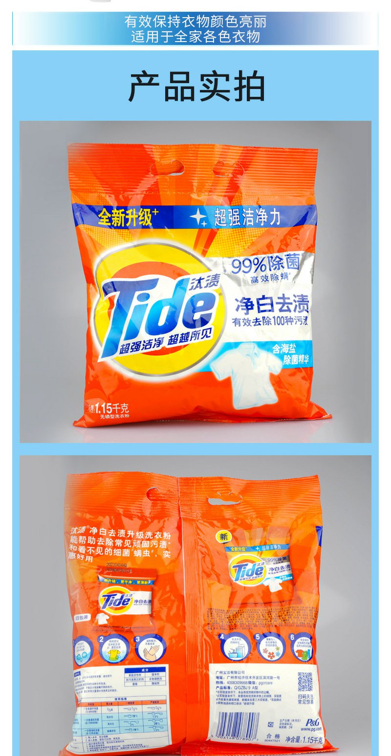 汰渍洗衣粉大包家庭家用无磷颗粒衣物去渍洁净清新1.15kg