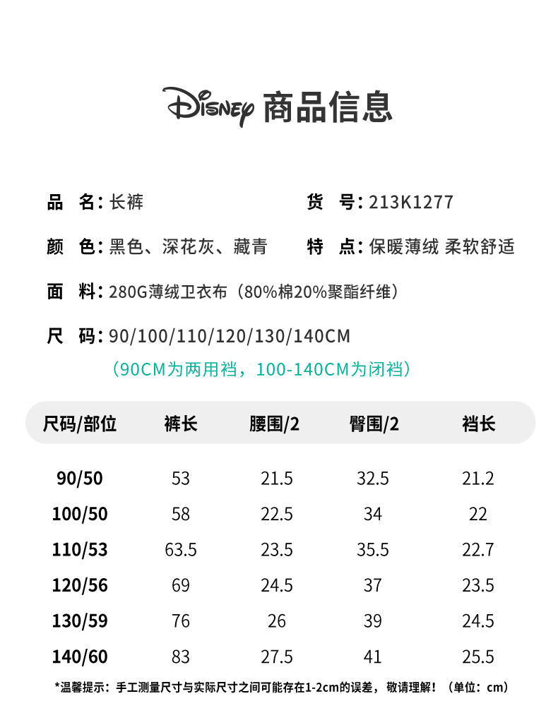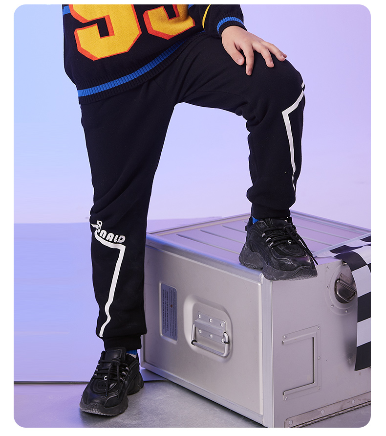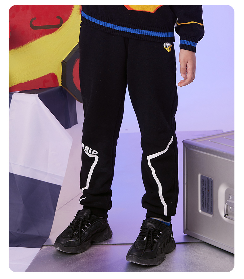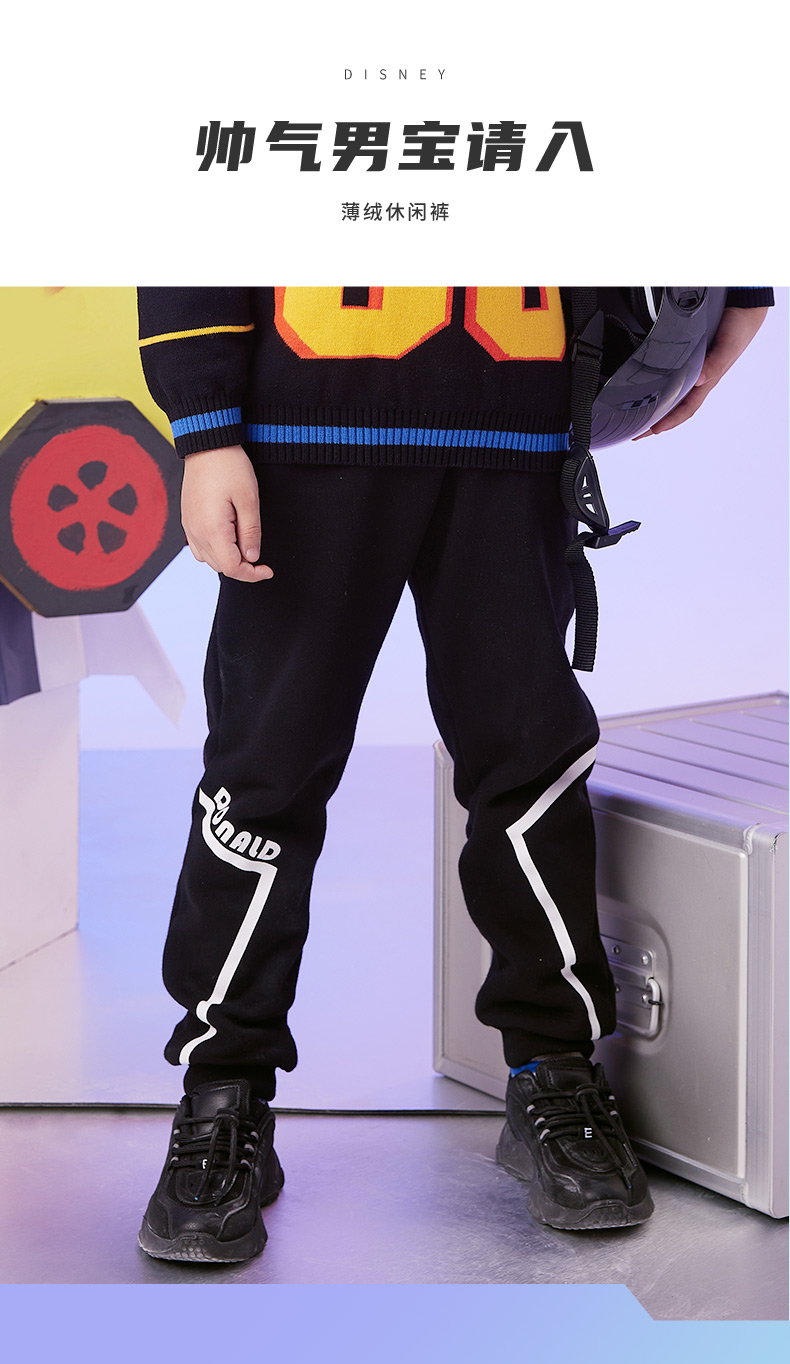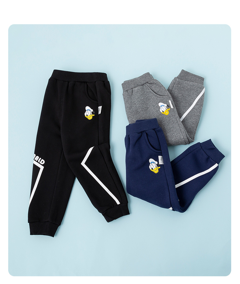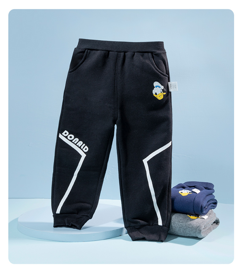 迪士尼童装男童加绒裤子春秋季洋气线条唐老鸭潮酷中大童薄绒裤子213K1277