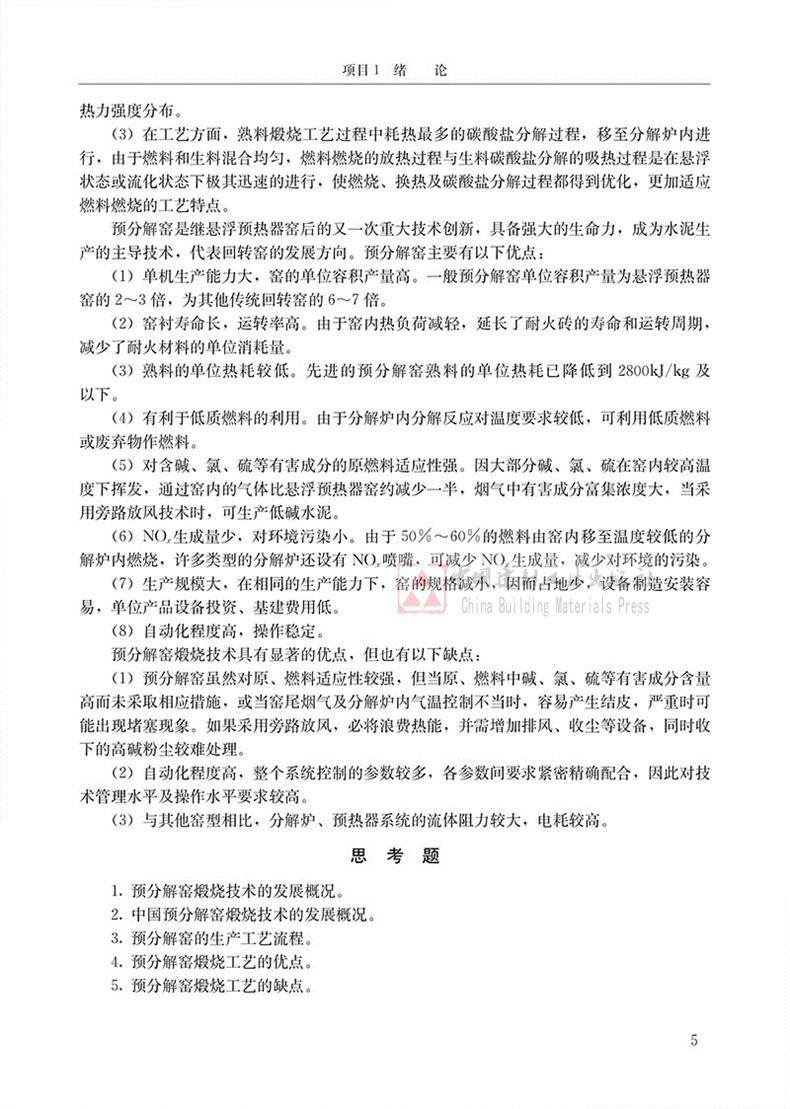 (2)根据预分解窑水泥企业的煅烧岗位所必备的专业知识和技能来设置教材内容,具有很好的实用性。