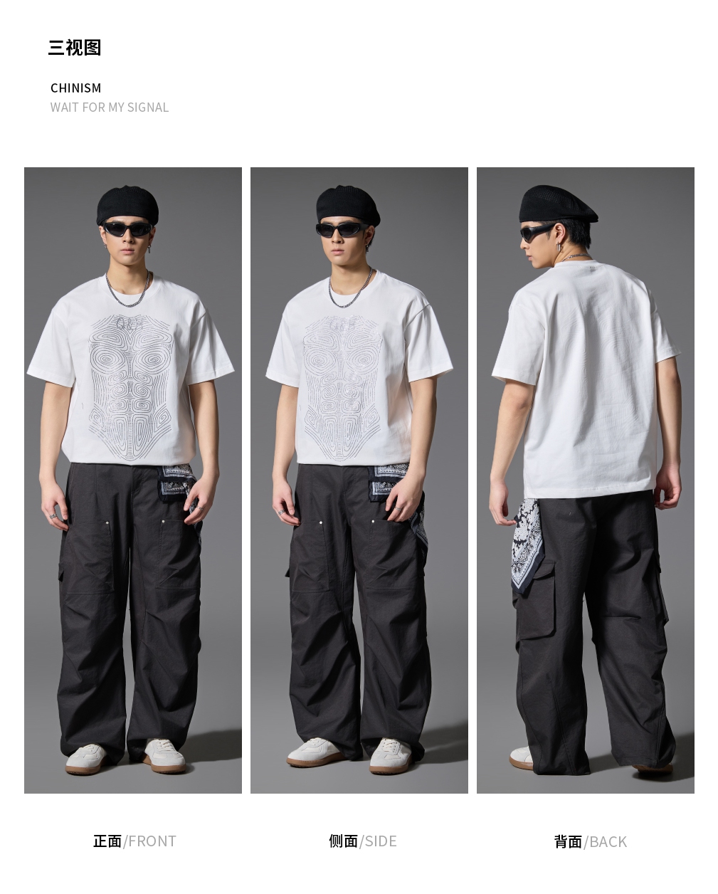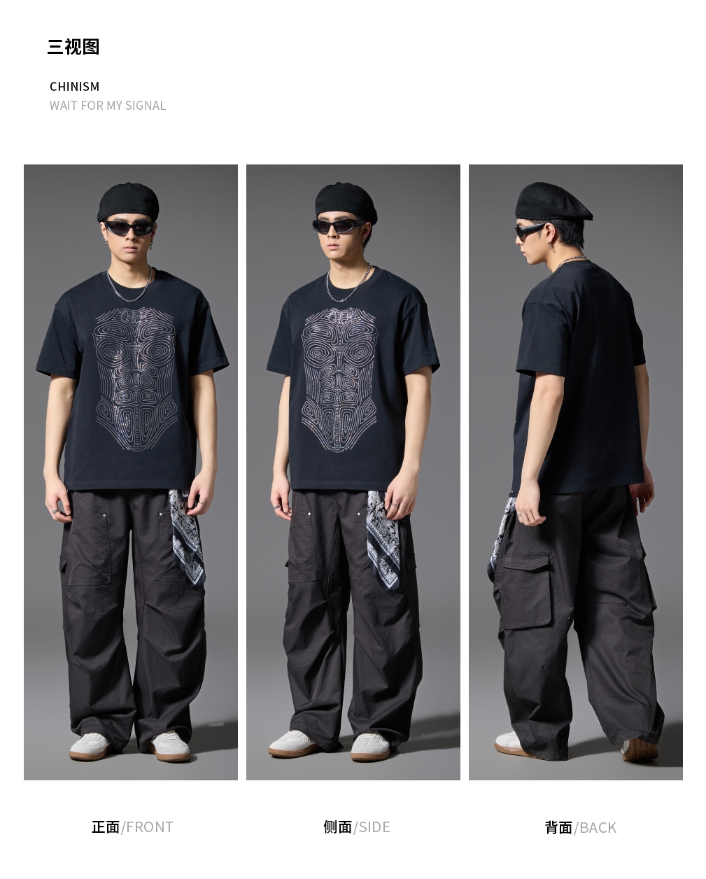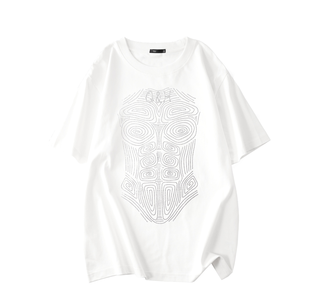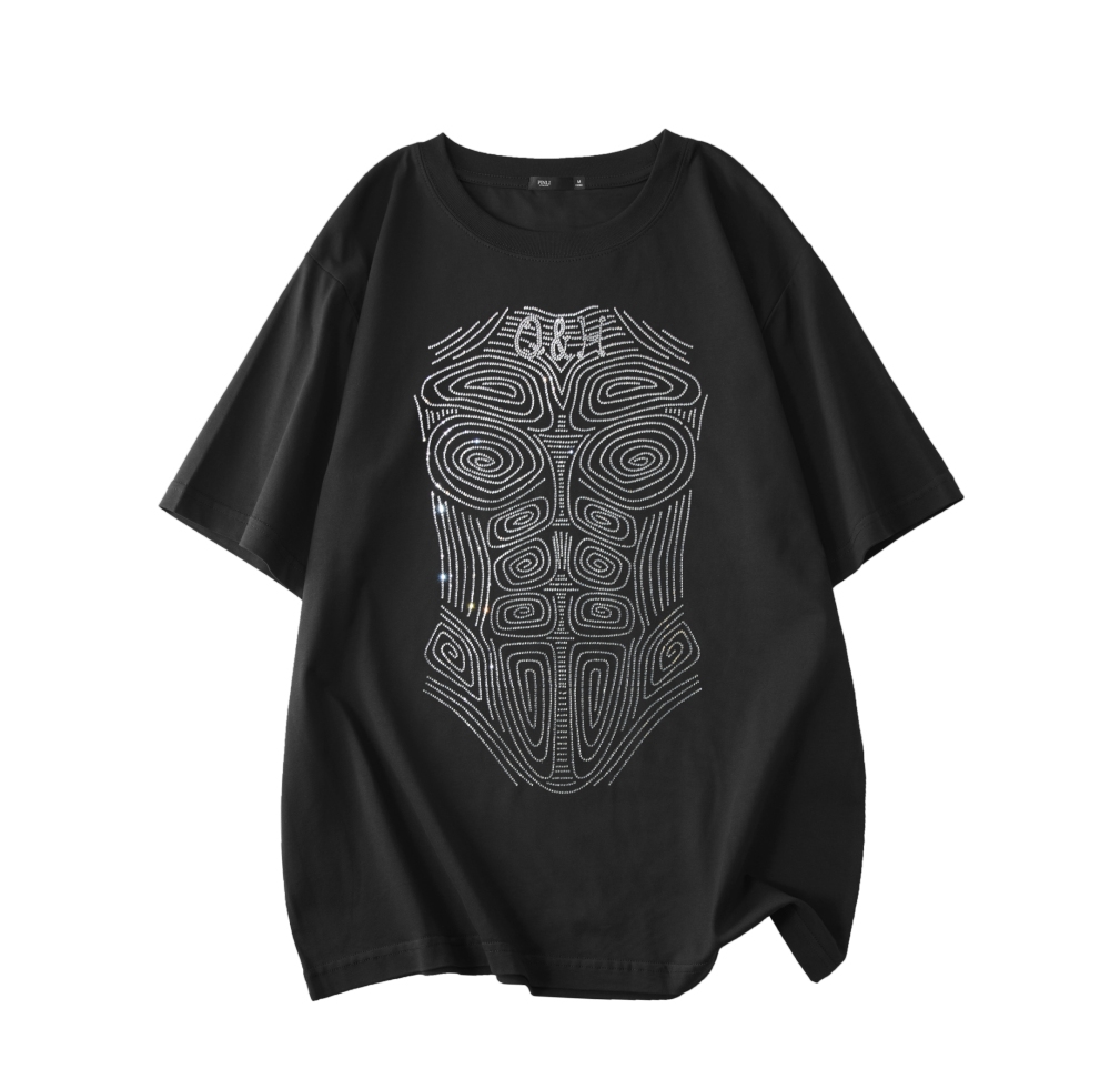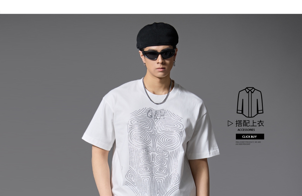 PINLI品立2025春夏新款时尚烫钻短袖T恤男士纯棉潮牌休闲百搭上衣BG252111012