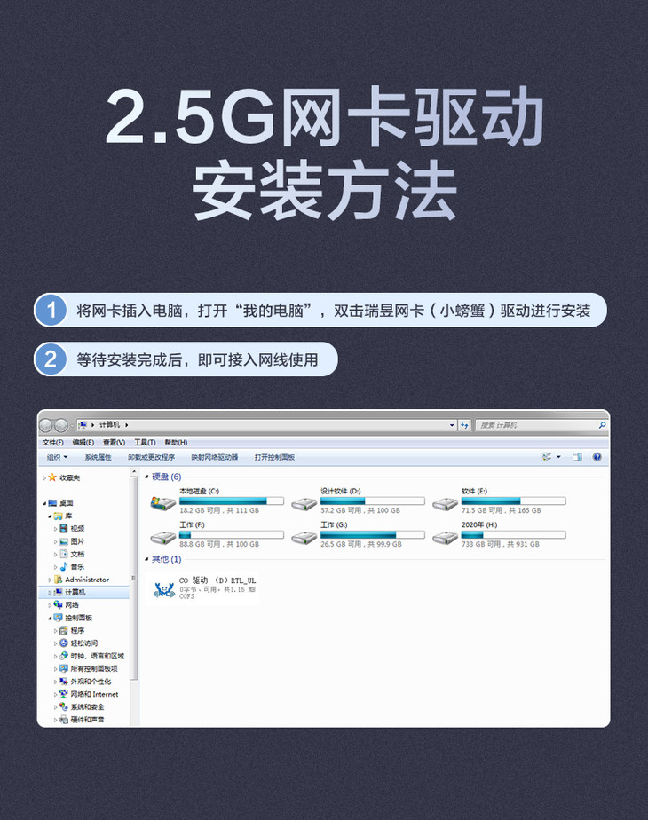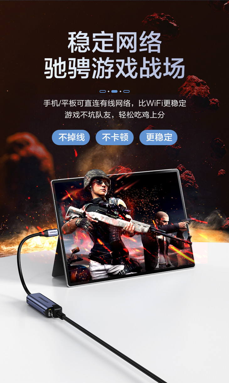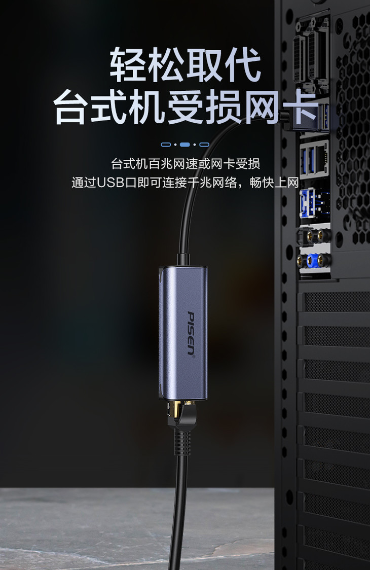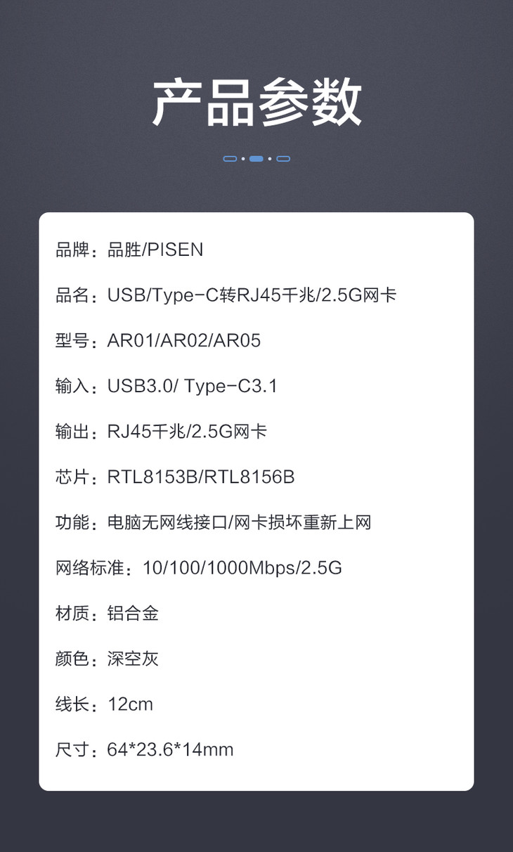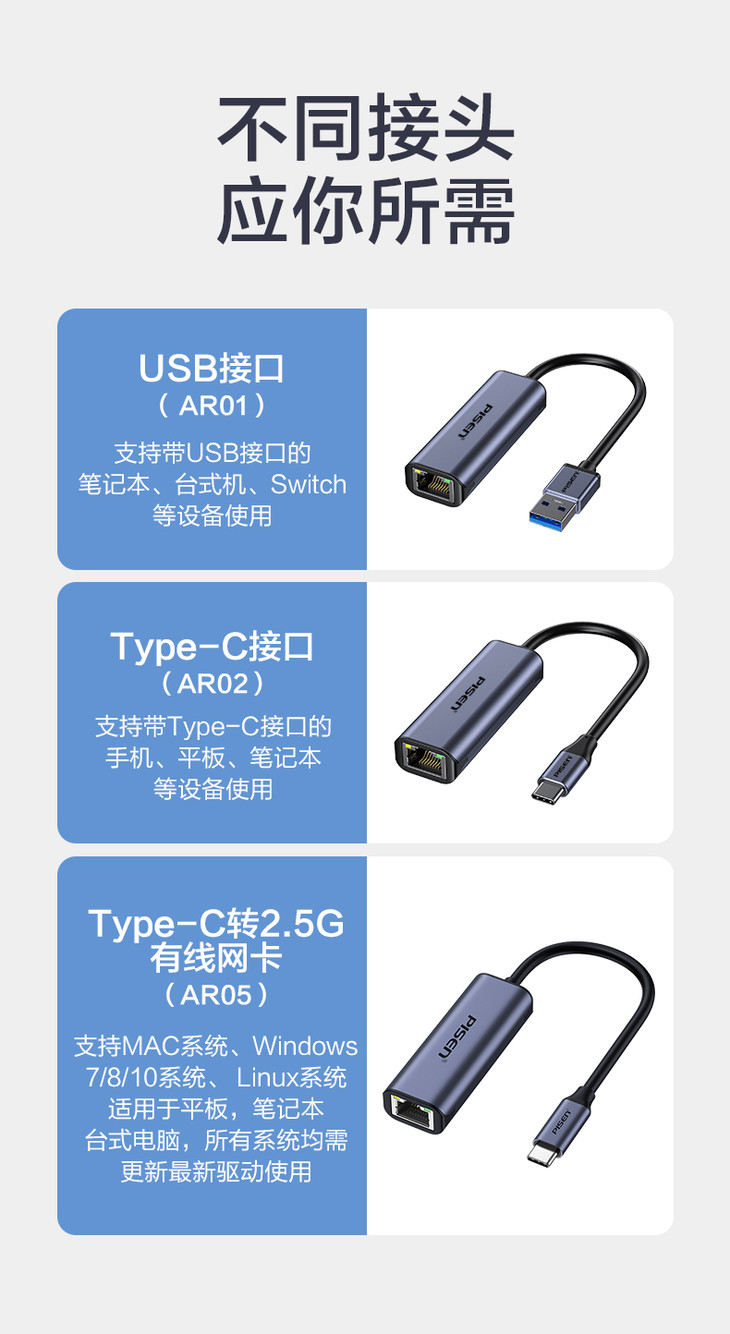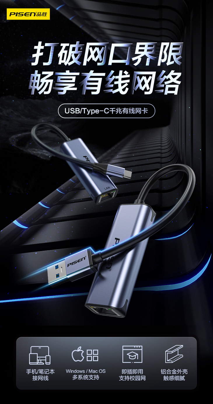品胜 多口扩展坞Type-C&USB3.0转RJ45千兆有线网卡 2.5G网卡 外置网线转接口 千兆免驱动接口有线转换器 适用于苹果笔记本电脑