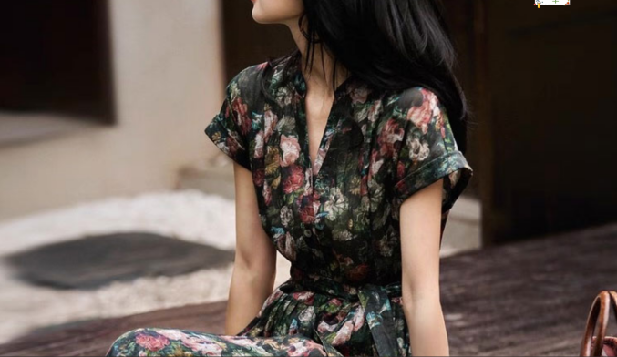 而满地的花卉图案设计,面料则要垂顺、清透、飘逸,这样行走间才能衬托出精致的韵味。