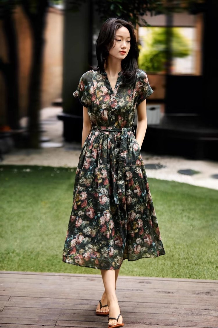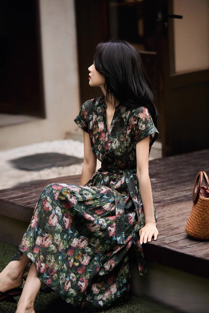 夏日浪漫加码的玫瑰印花裙,仿佛步入绮丽的梦境花园,馥郁色彩交织,释放法式复古的优雅氛围!
