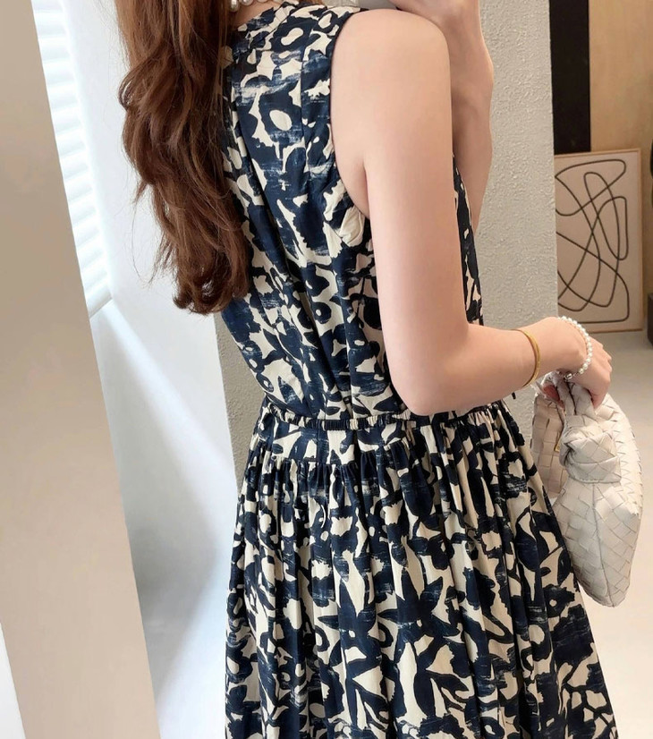 泼墨蓝白印花,犹如把莫奈花园穿在身上,就像是艺术品一般。