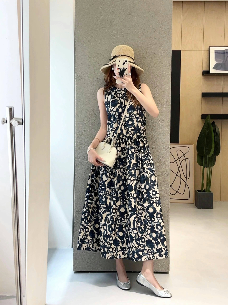 全身定染的泼墨印花,冷调蓝白碰撞,仿佛把普罗旺斯的天空与海浪穿在了身上~