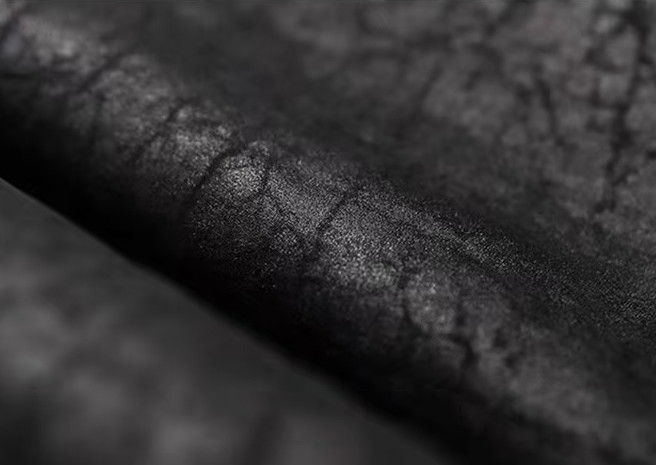 在存放一定时间,再拿到砂洗场进行砂洗而成的效果,所以面料触感也如香云纱一般舒爽亲肤。