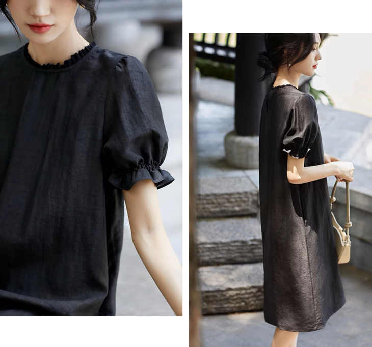 这盛夏美裙,添加了42%的桑蚕丝胚布而成的香云纱,媲美全真丝香云纱,触肤瞬间的凉爽与顺滑感,让人穿着就不想脱下来。