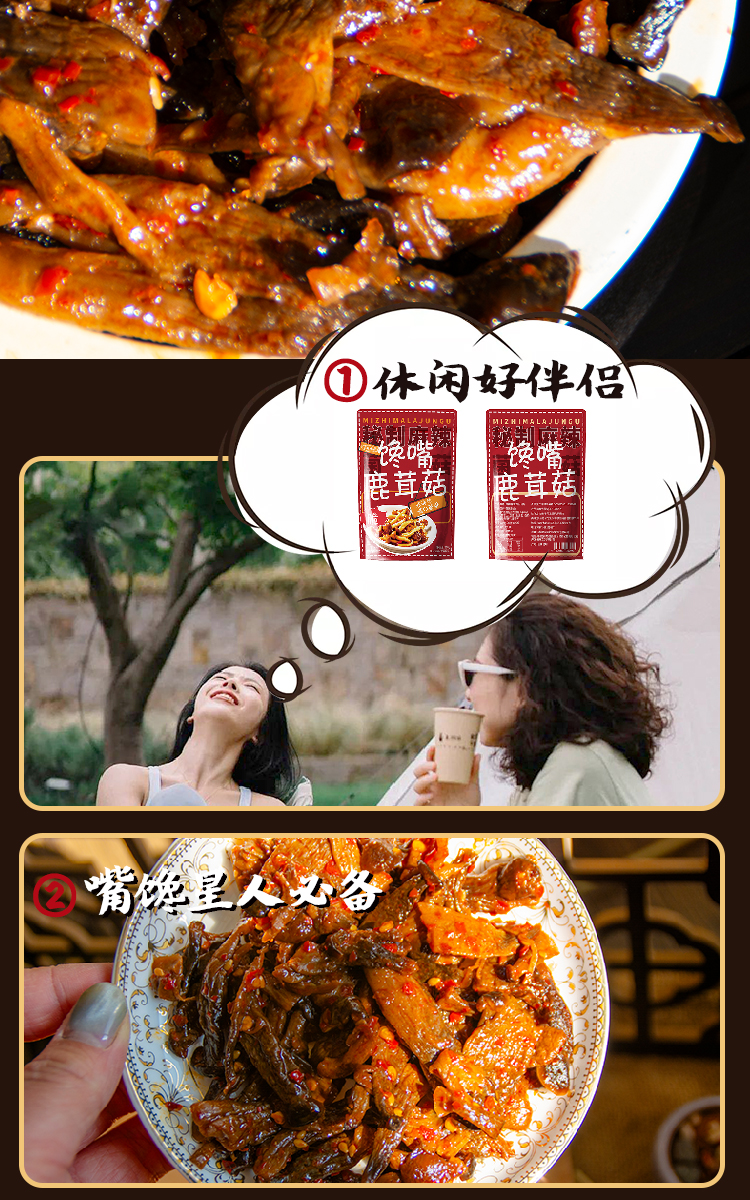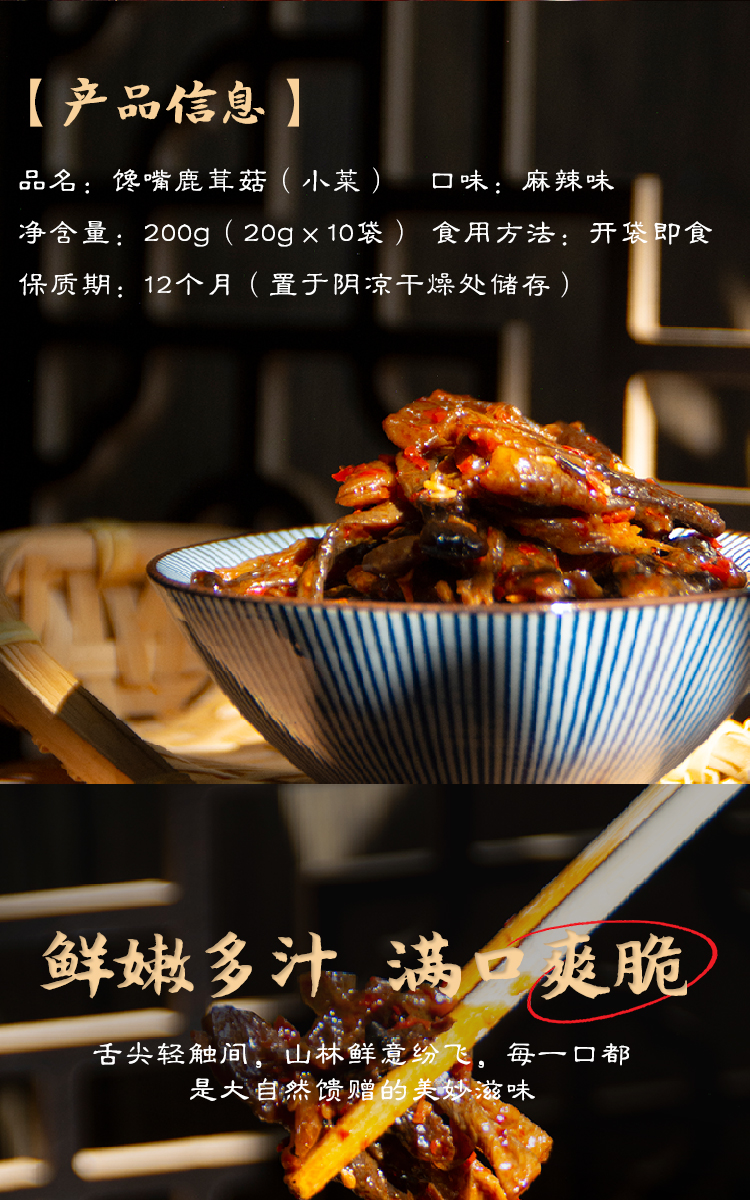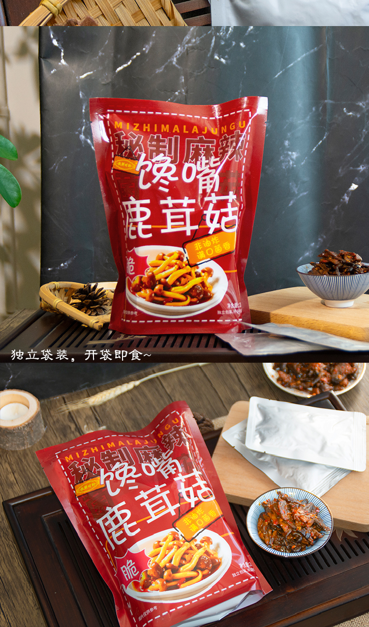 馋嘴鹿茸菇休闲零食超绝下饭菜麻辣鲜香爽脆可口开袋即食200g独立袋装