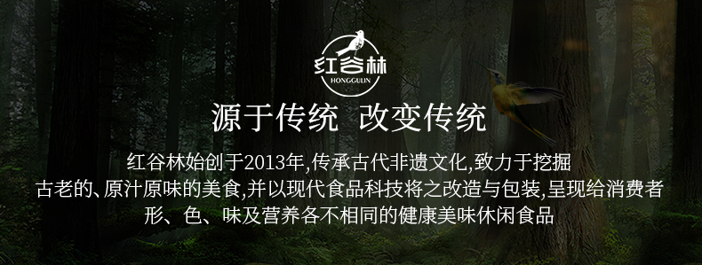 - 秉承红谷林人的一贯严谨态度,深入世界各地,严格把关产品源头。以“分享更快乐”为品牌理念,为消费者提供健康安心的食品。