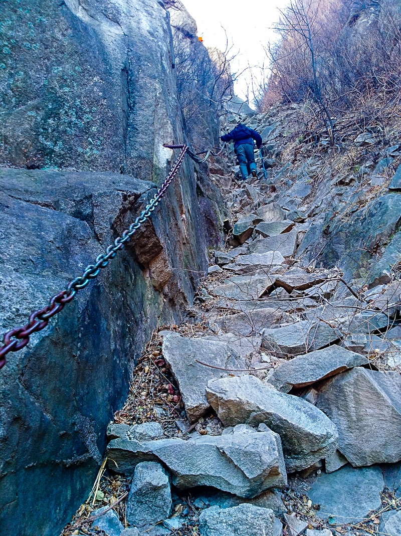后花园景区很大,主要分南北相连的两条线,北线有万福梯,修在峭壁上的一个笔直的爬升,北京的其他山很少见。