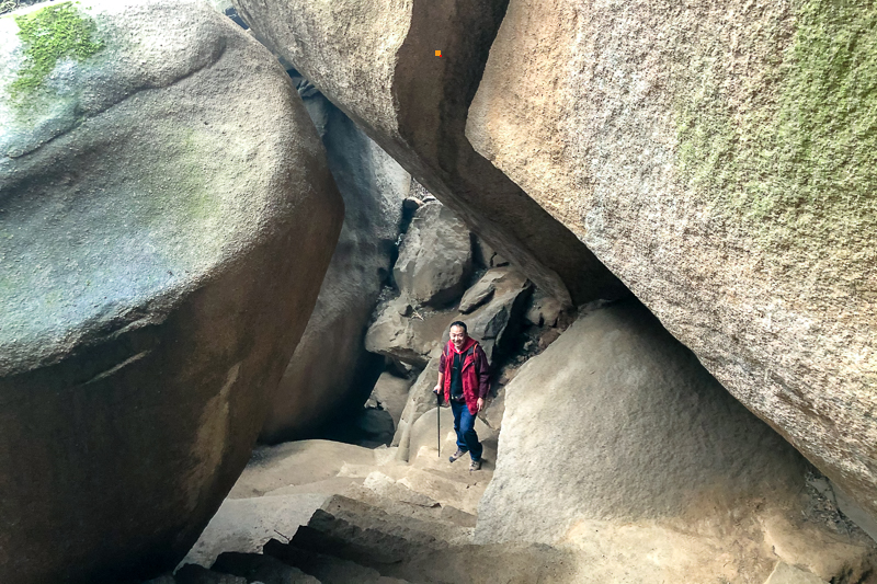 景区大门海拔150米,万福梯顶端海拔420米,超过200米的连续爬升,几乎没有可以歇脚的地方,喜欢爬山的人一定不要错过,南线最高处海拔550米,南线400米以上的地方坡度非常大,再加上路面损毁比较严重,很难走,需要手脚并用才能缓慢前行,适合徒步登山。