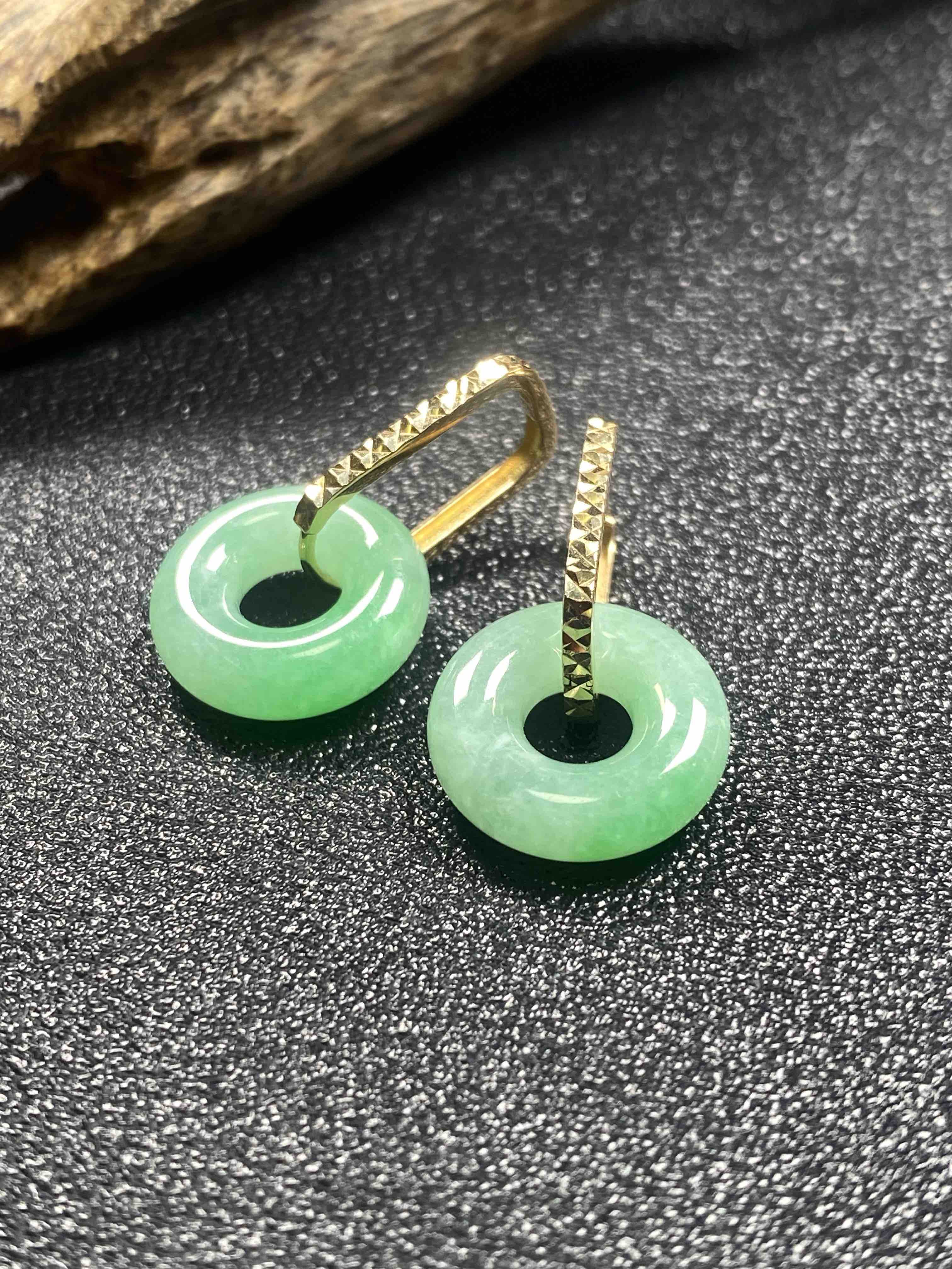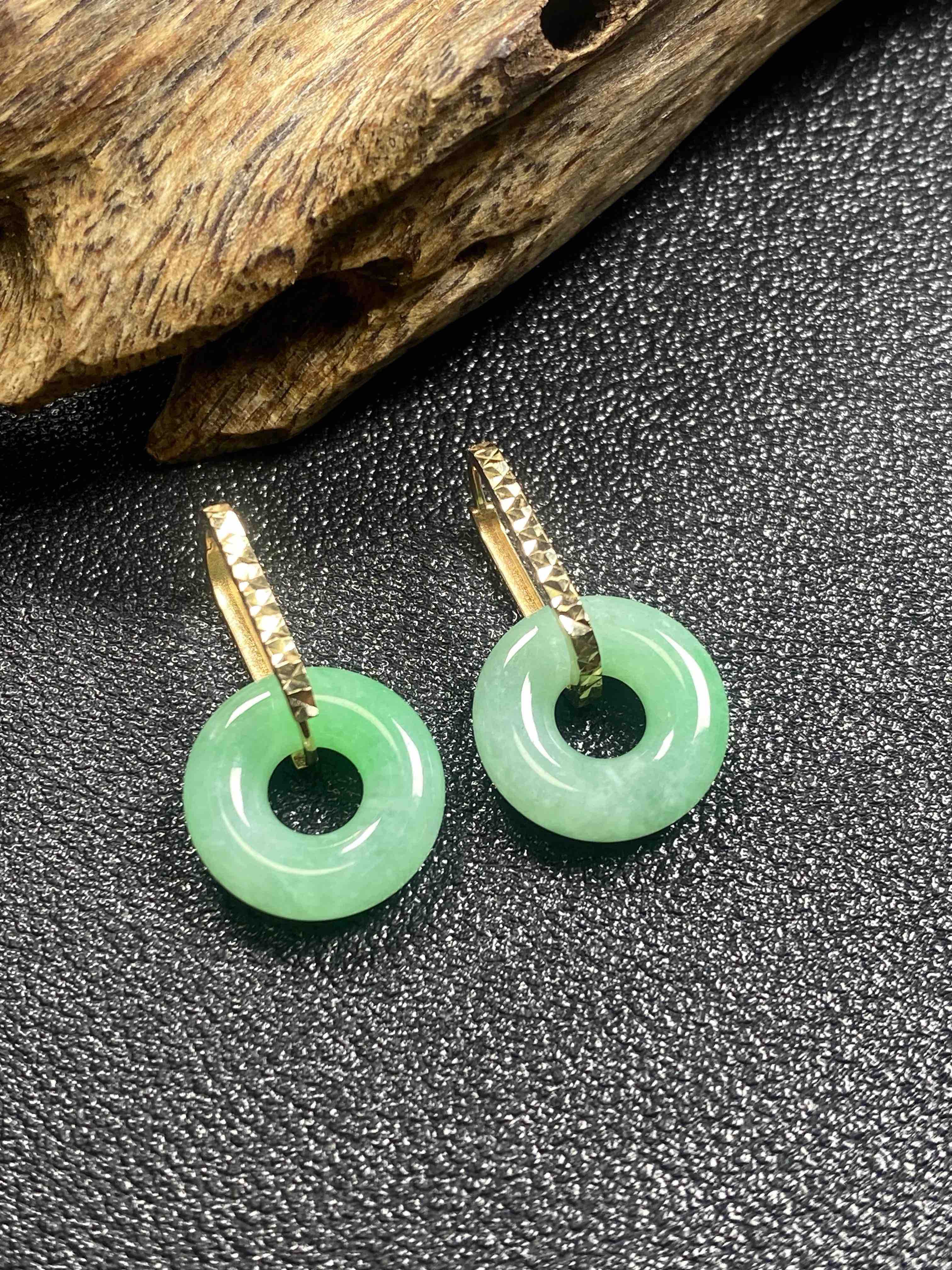 【FC0119】18K镶嵌翡翠冰种平安环耳坠 冰润光泽 色泽甜美