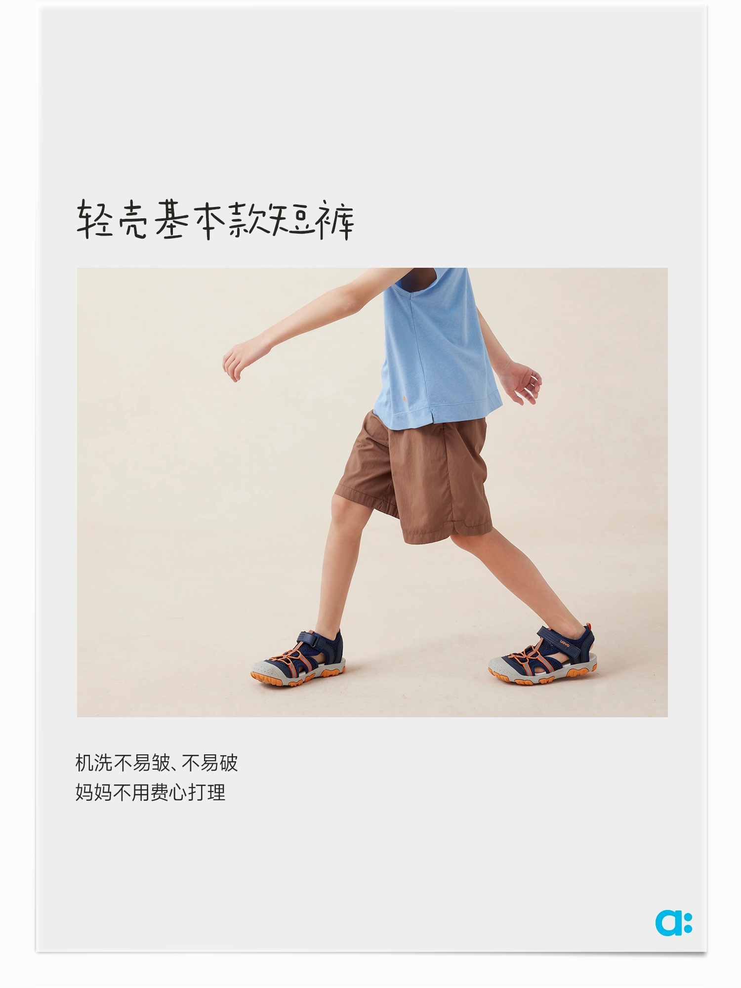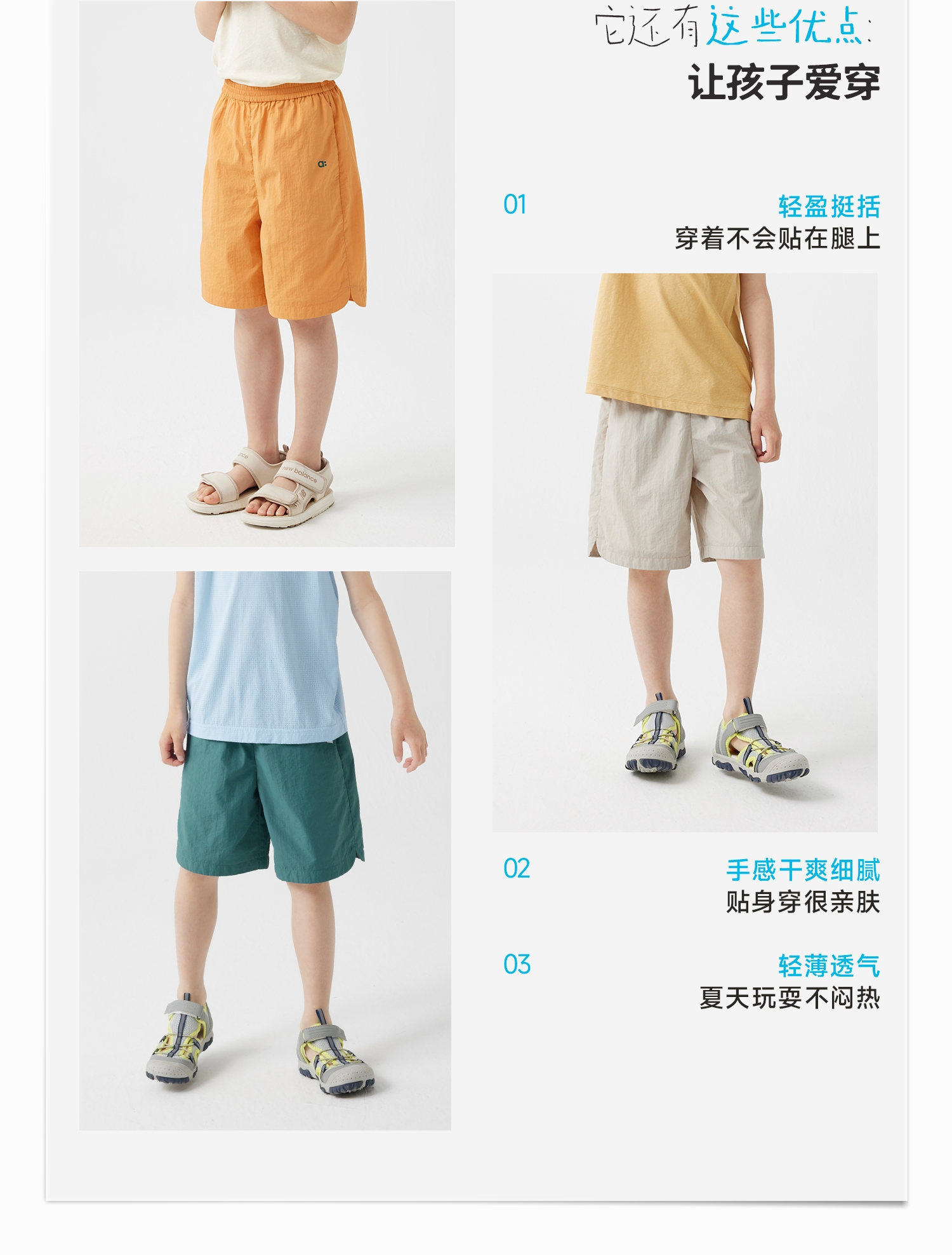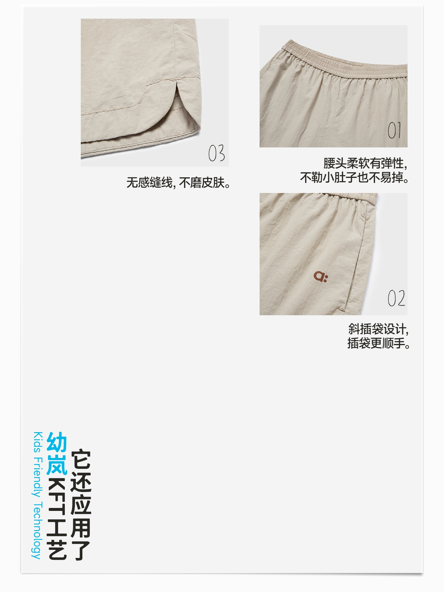 【夏Vol.3】幼岚「轻壳」基本款短裤轻盈透气耐造耐穿24夏季新款儿童百搭短裤ZY