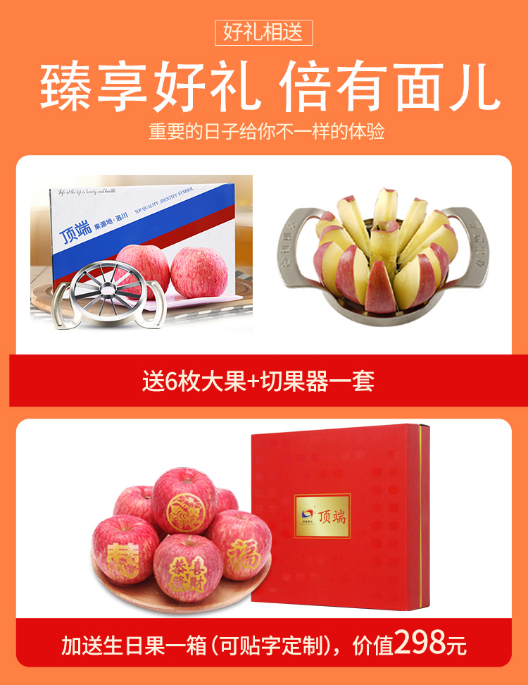 【年供款】 顶端果业洛川红富士苹果16枚90mm特大果蓝色礼盒全年月供12箱