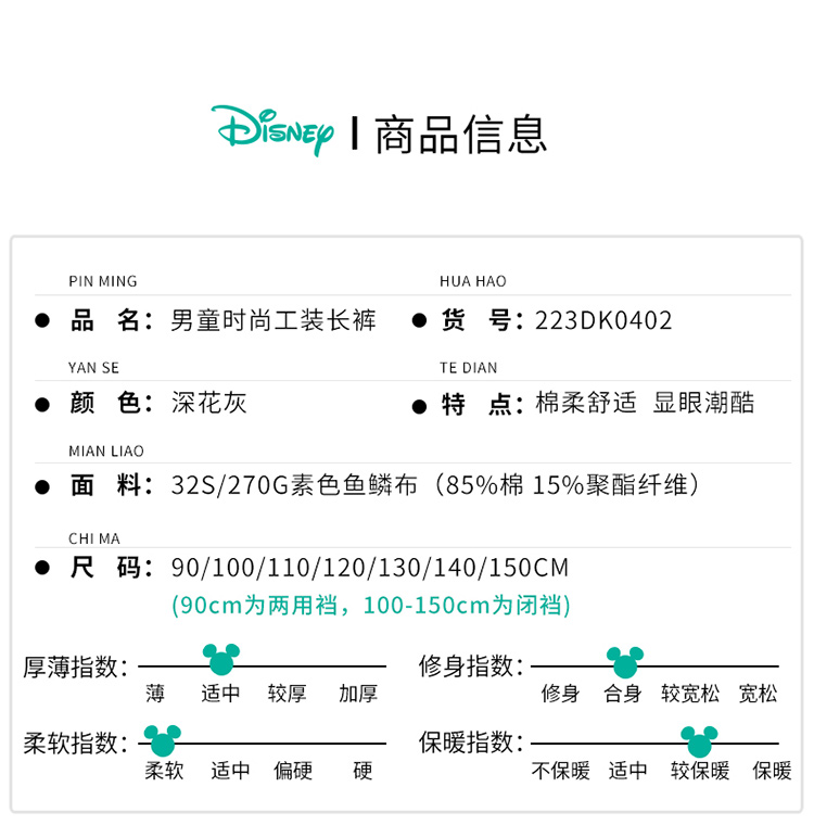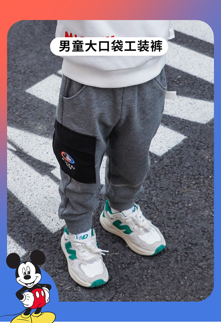 【商场同款】秋冬新款男童时尚米奇印花工装长裤中大童卫裤学生束脚裤223DK0402