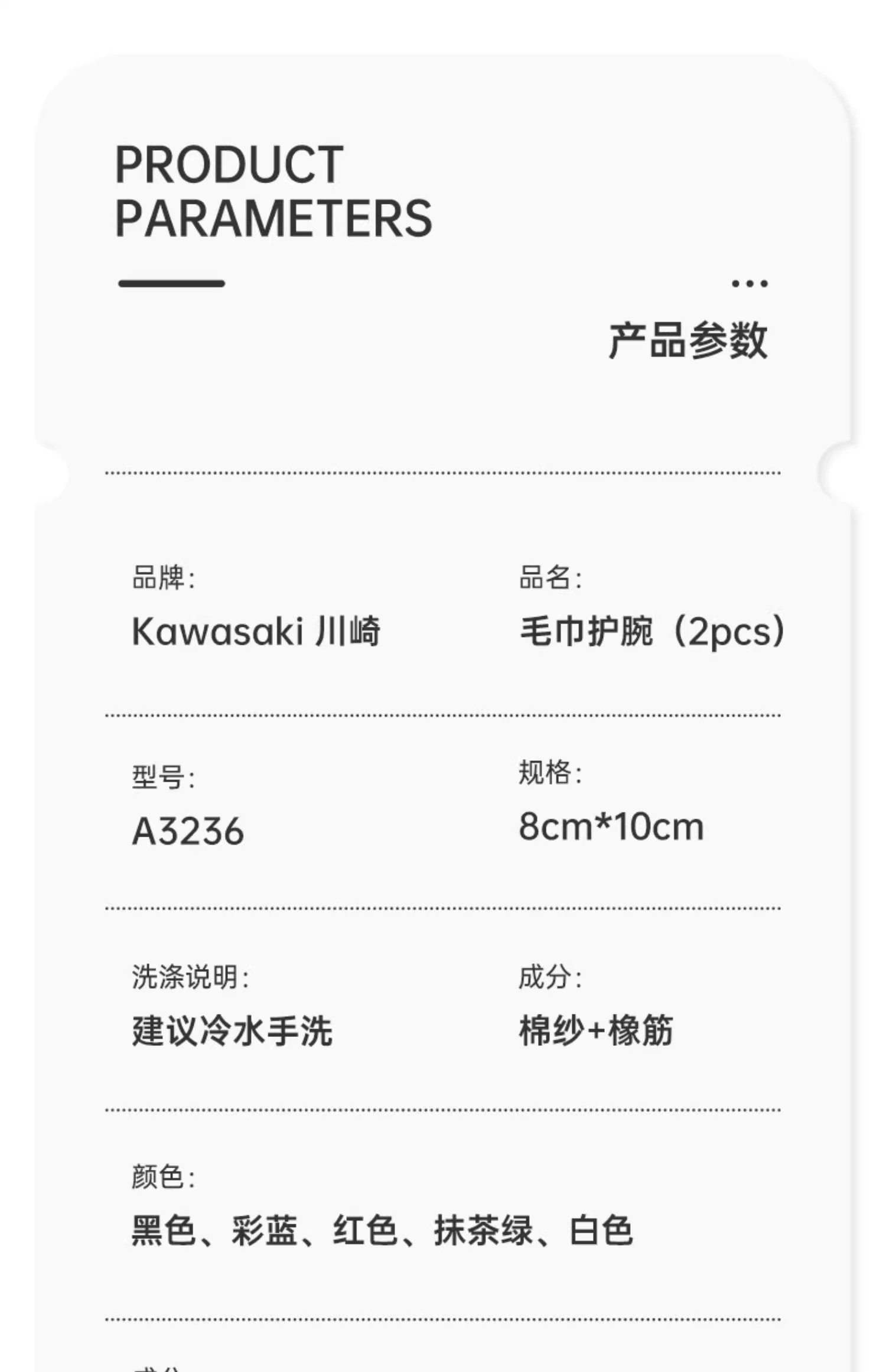 【同城】川崎 护腕棉质吸汗防扭伤擦汗亲肤 K1E00-A3236(2只装)