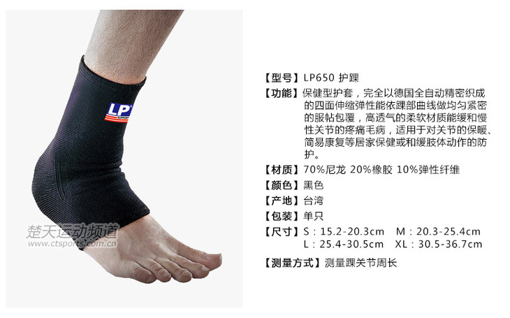 LP护具 高伸缩性踝部保健护套 LP650 护踝 四面伸缩弹性材质 均匀紧密包裹
