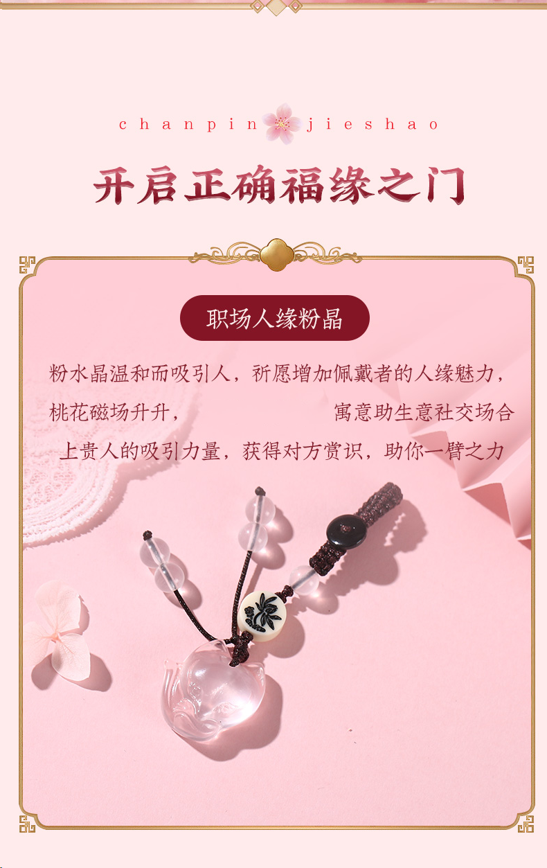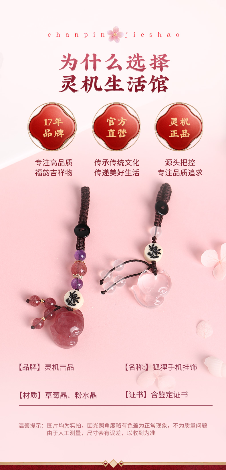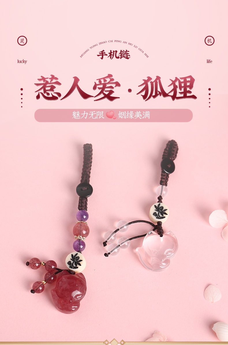灵机生活馆粉水晶狐狸桃花挂件汽车钥匙扣包挂饰