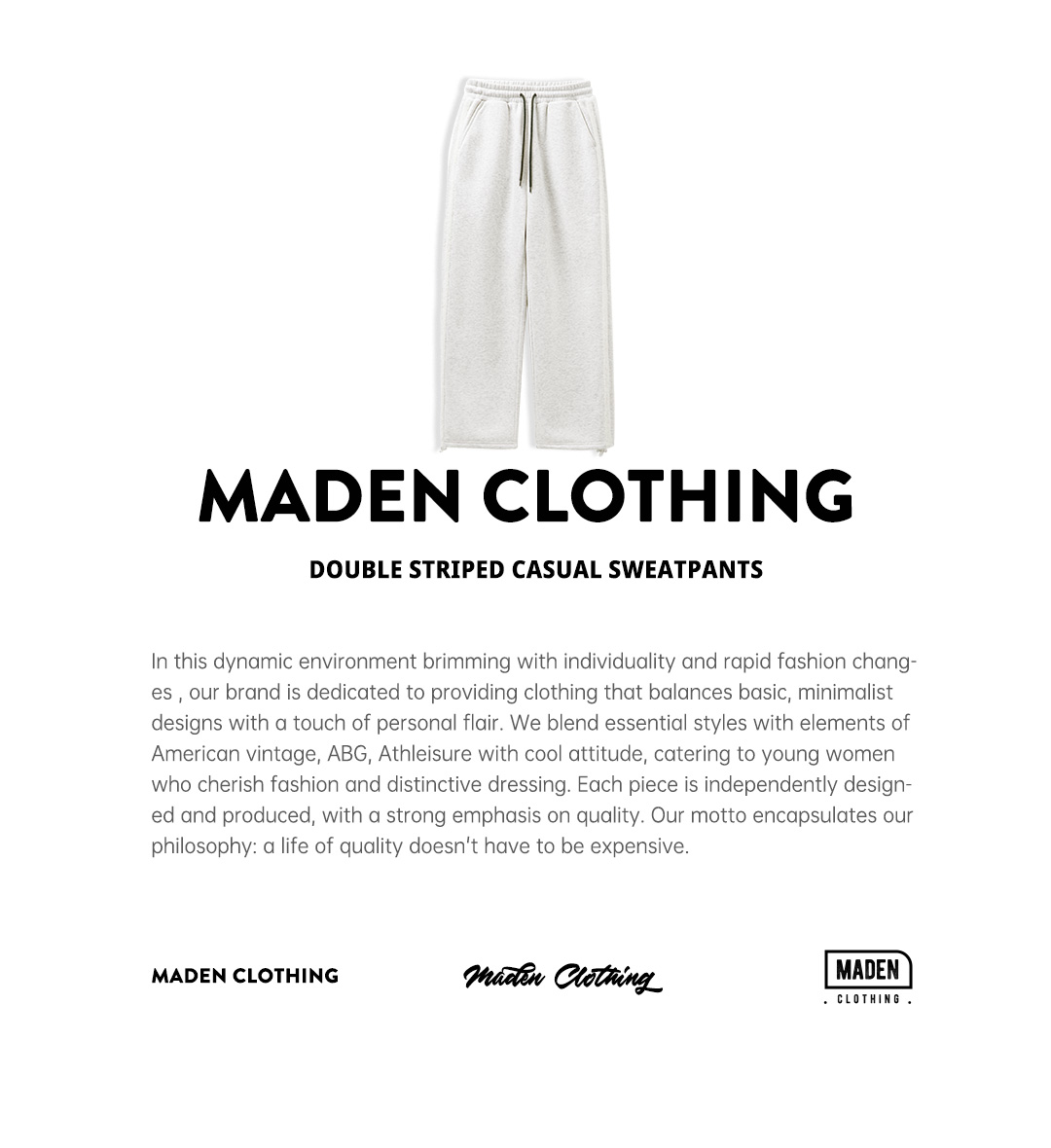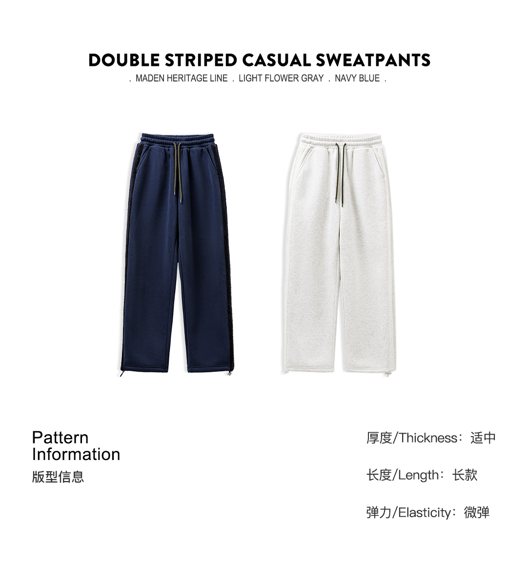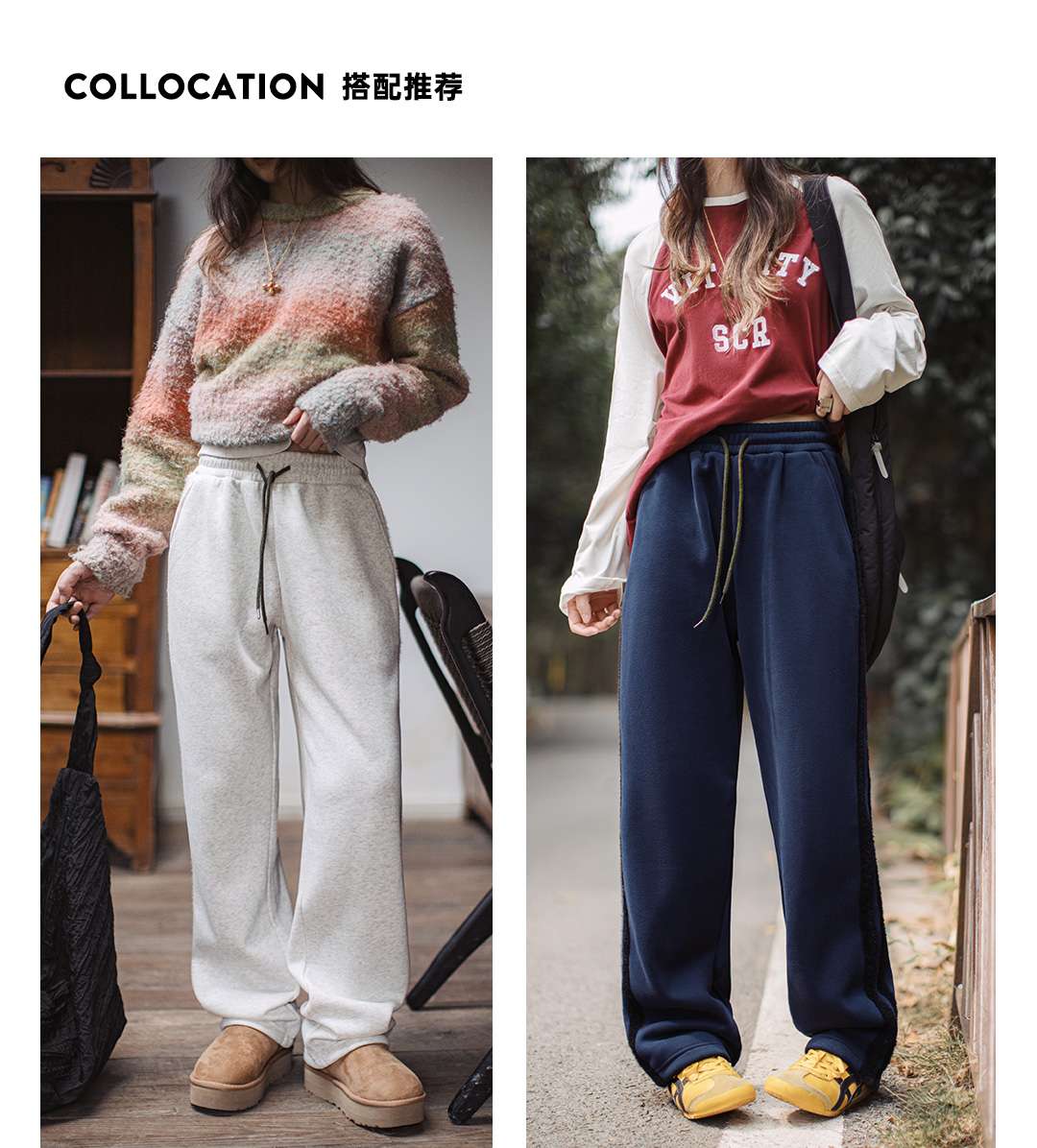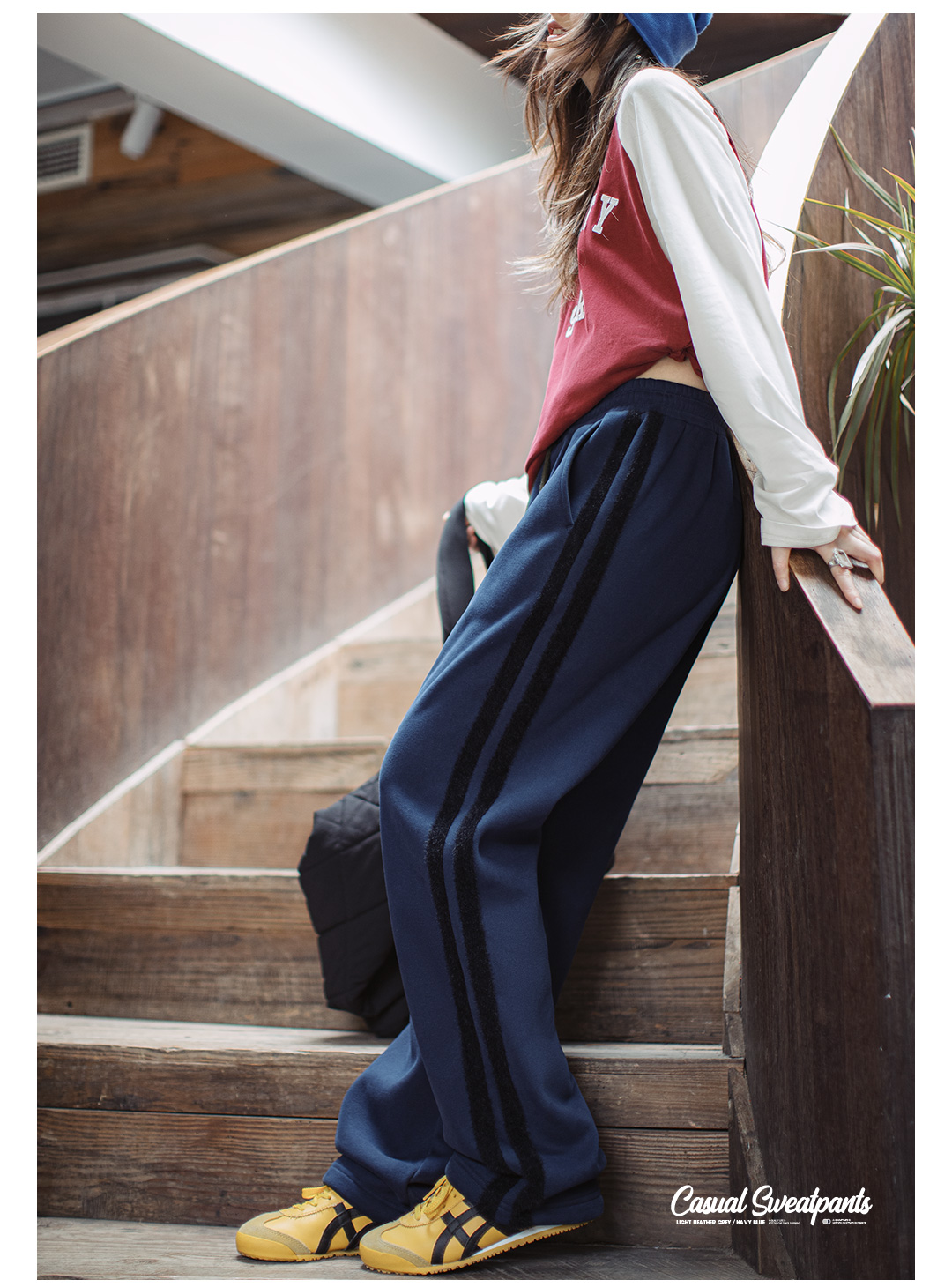 马登美式双杠条纹卫裤宽松加绒厚休闲裤垂感外穿抽绳运动裤秋冬女
