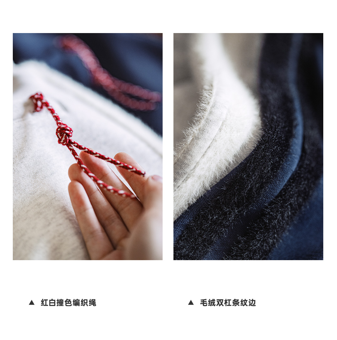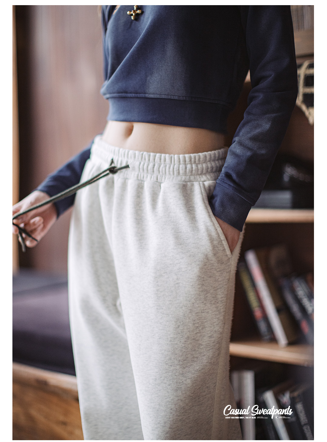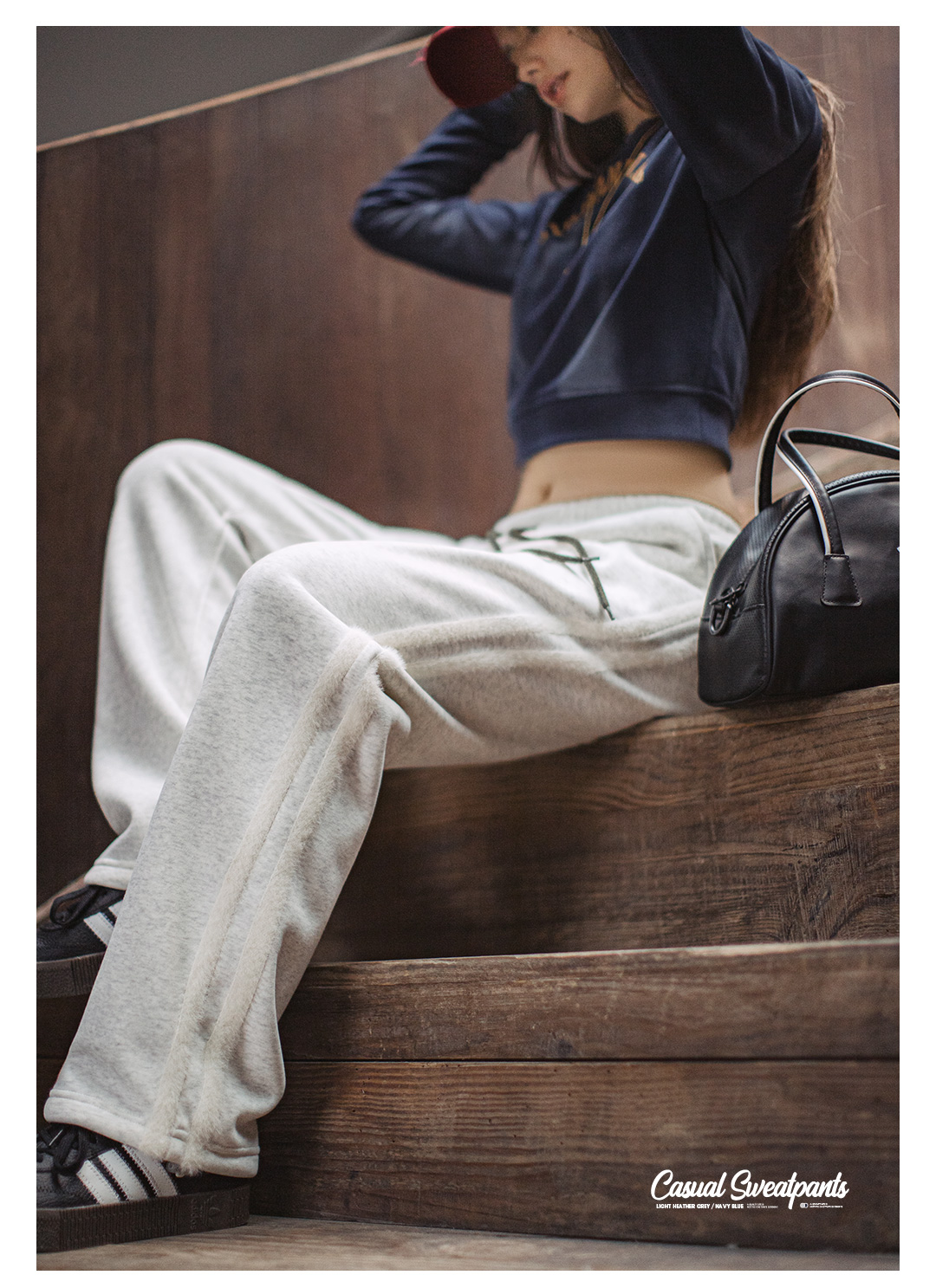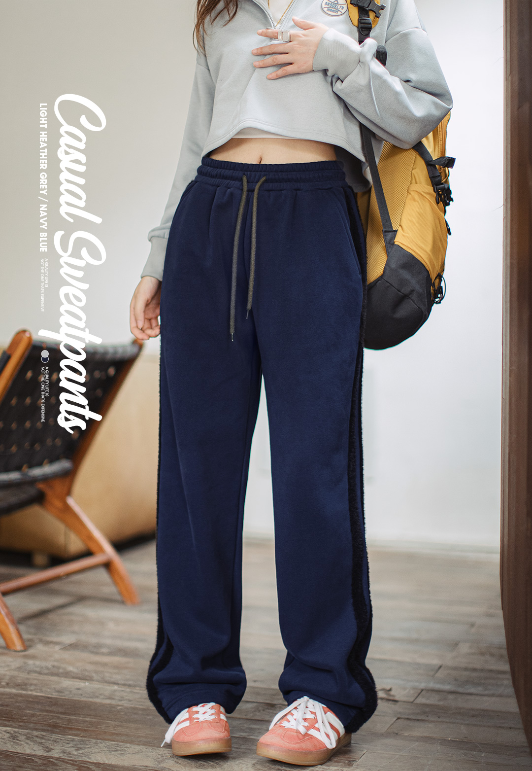 马登美式双杠条纹卫裤宽松加绒厚休闲裤垂感外穿抽绳运动裤秋冬女