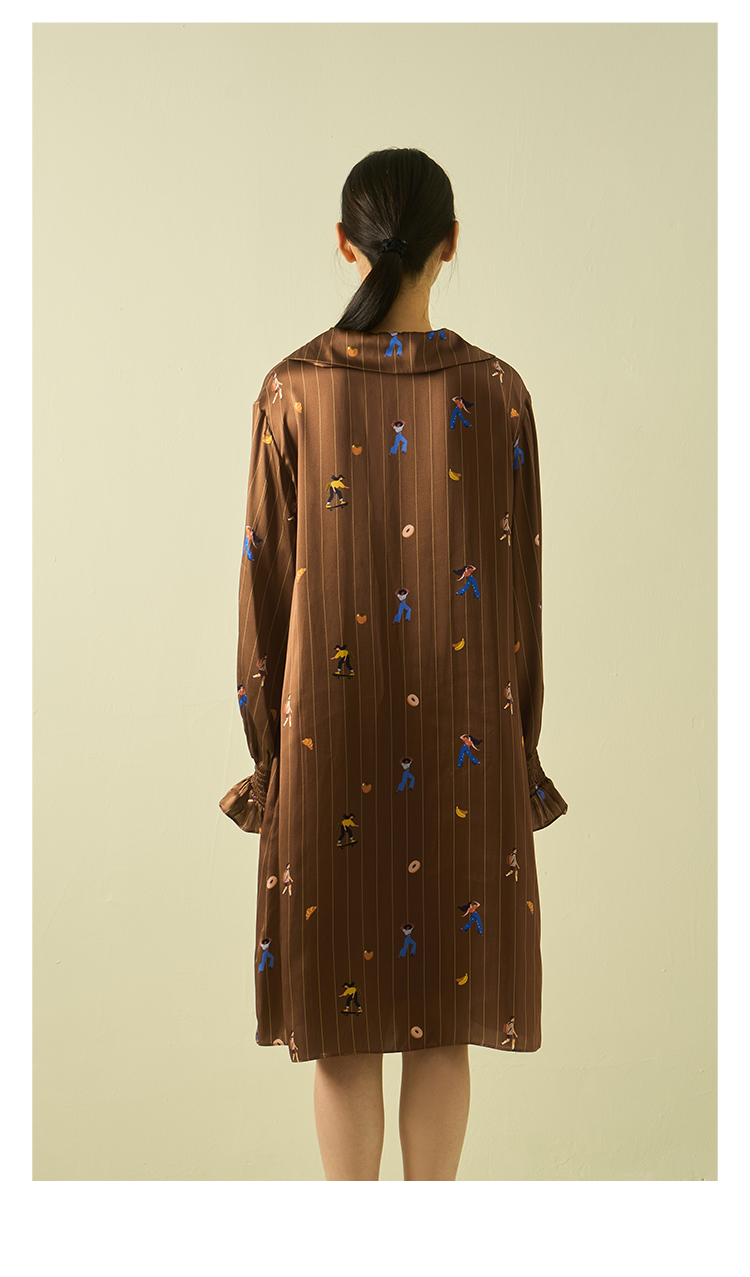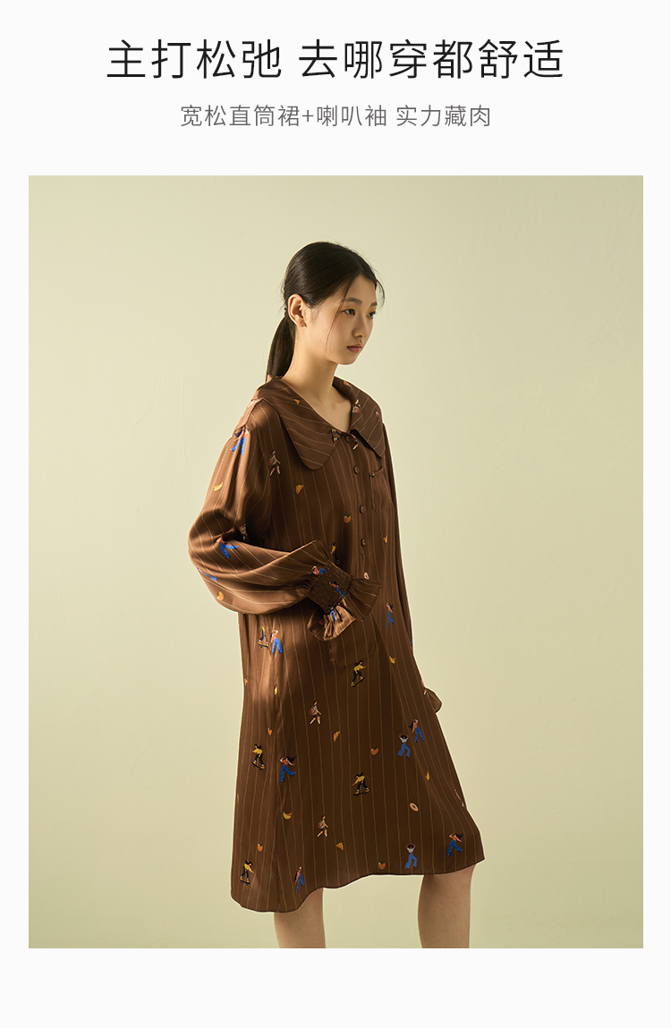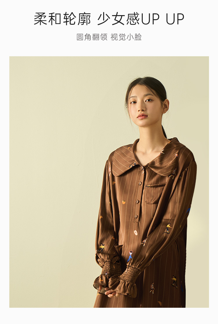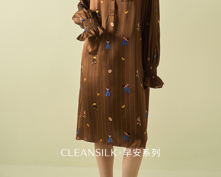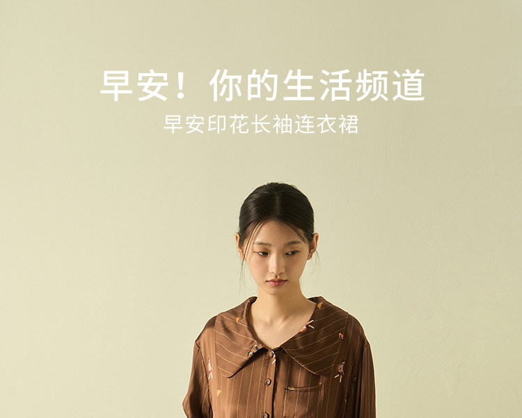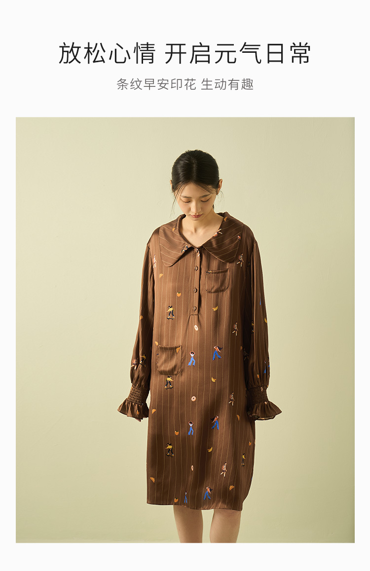 “早安系列”桑罗真丝咖色条纹印花睡裙开启元气日常