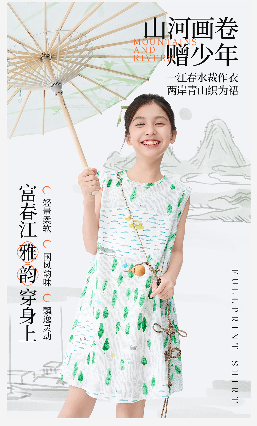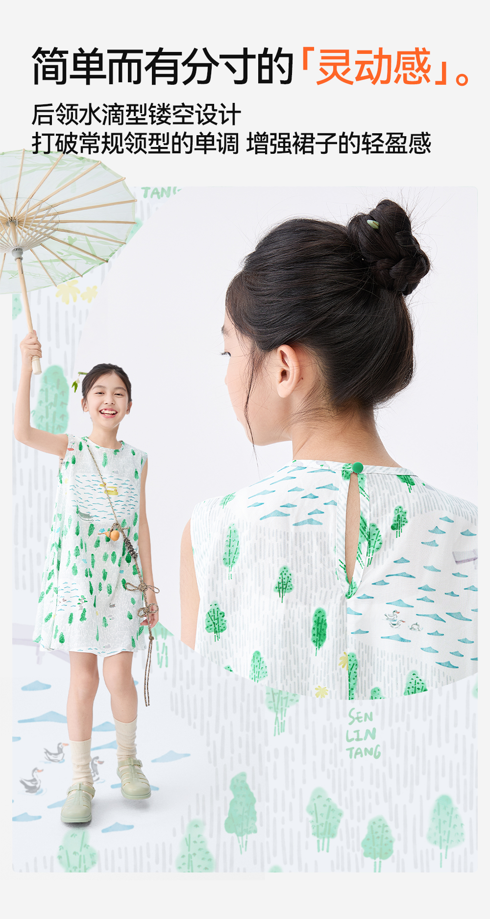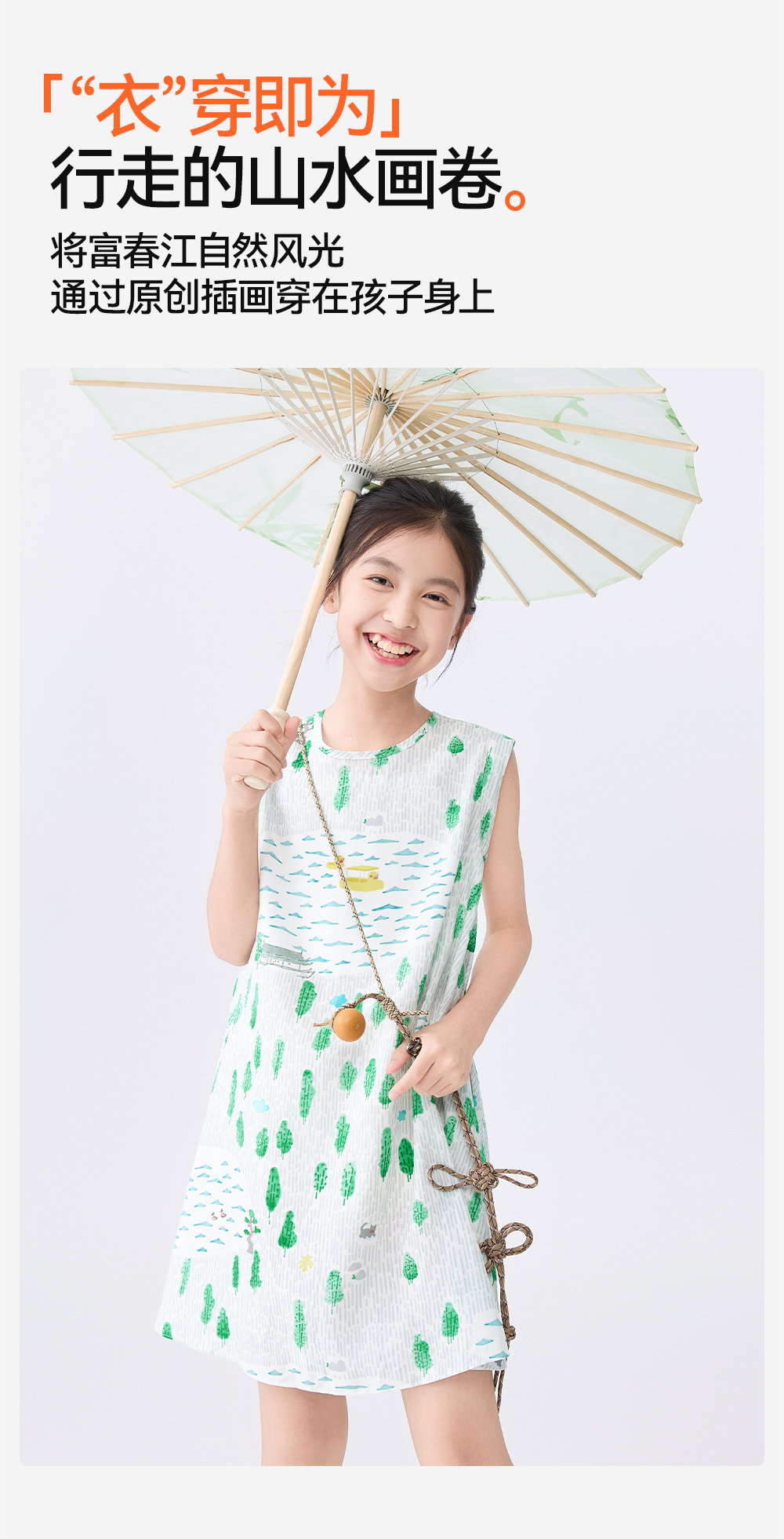 [屁侠推荐]富春江儿童连衣裙森林棠25夏款女国风手绘印花无袖背心连衣裙41132504