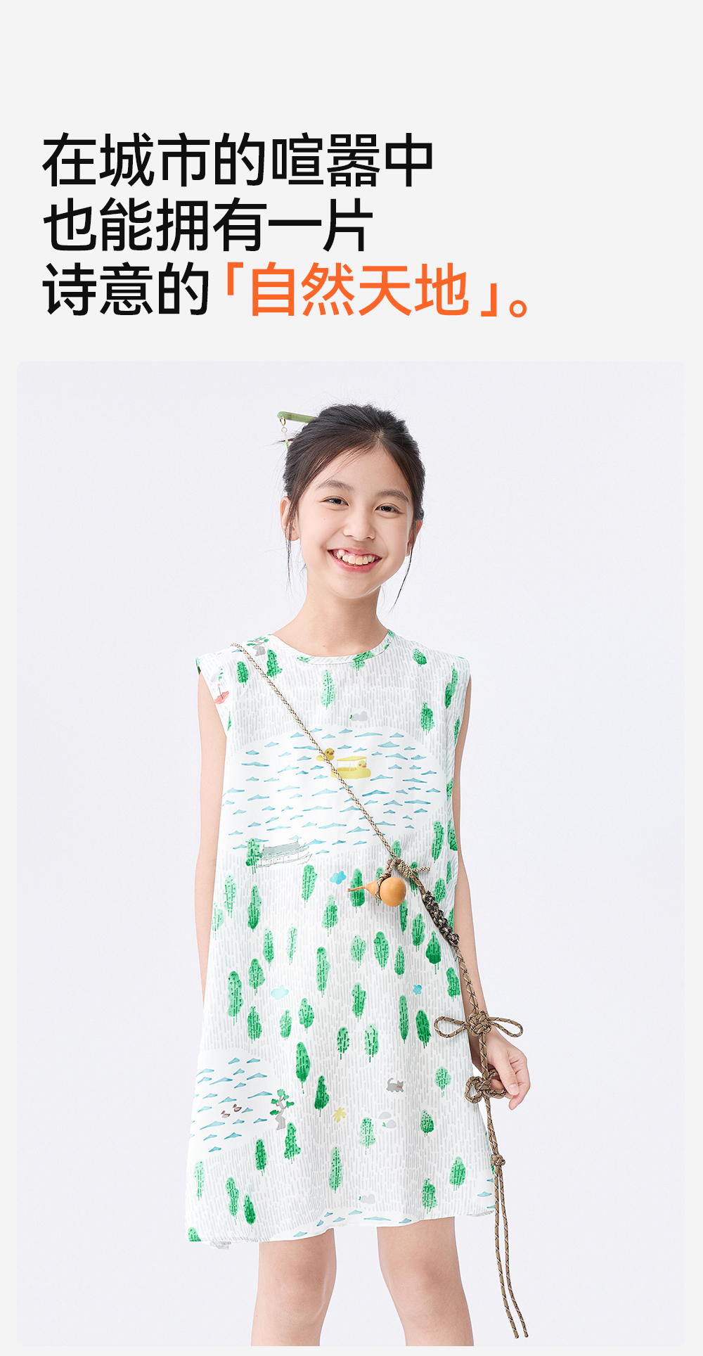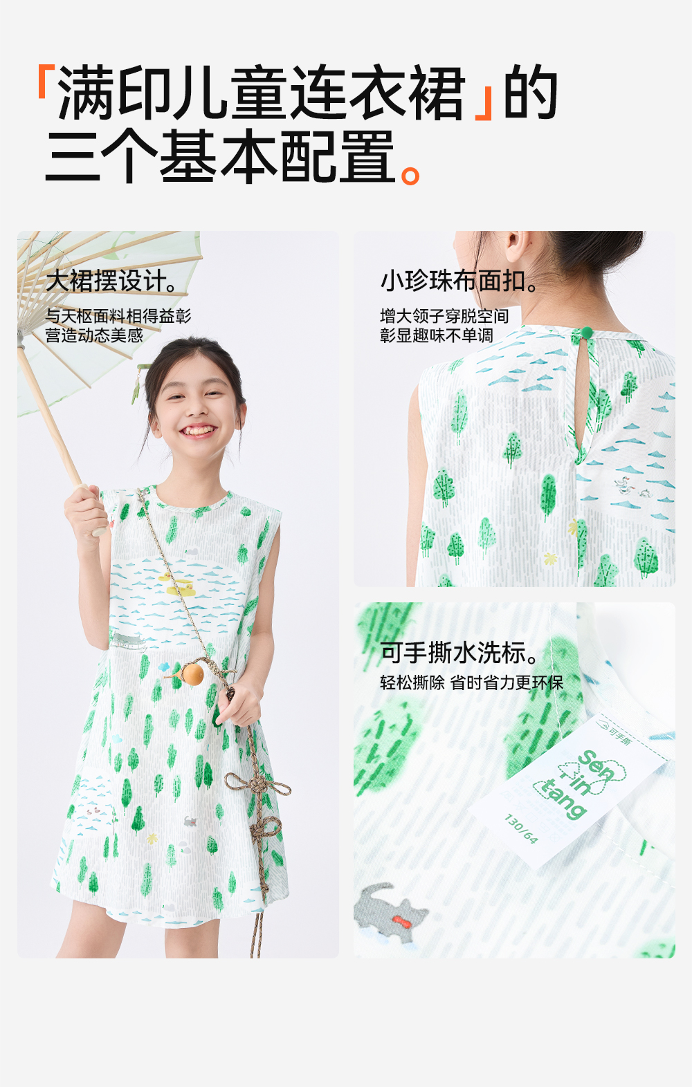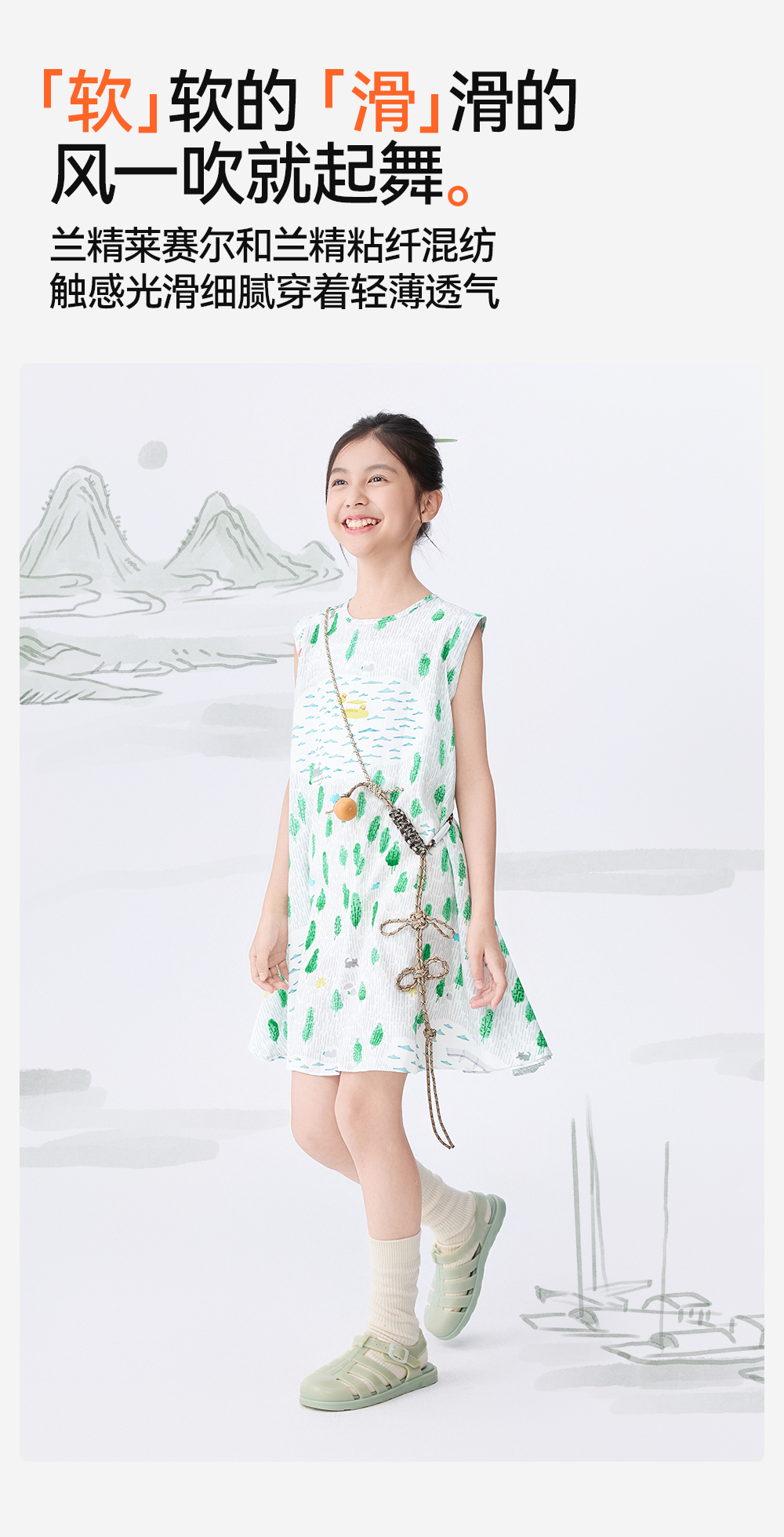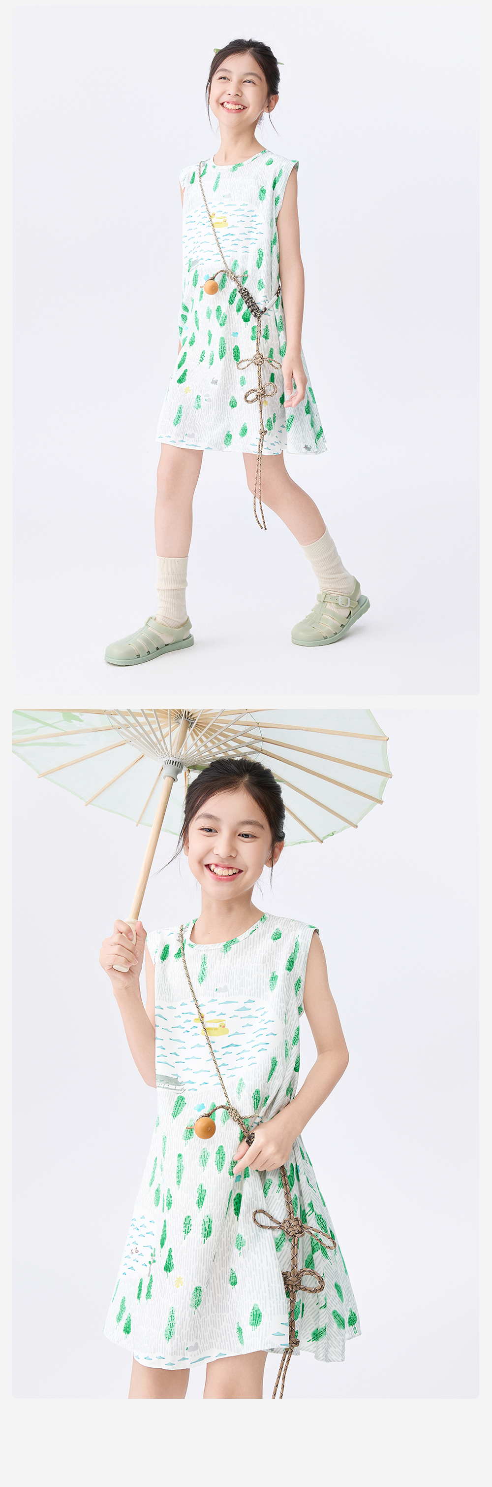[屁侠推荐]富春江儿童连衣裙森林棠25夏款女国风手绘印花无袖背心连衣裙41132504