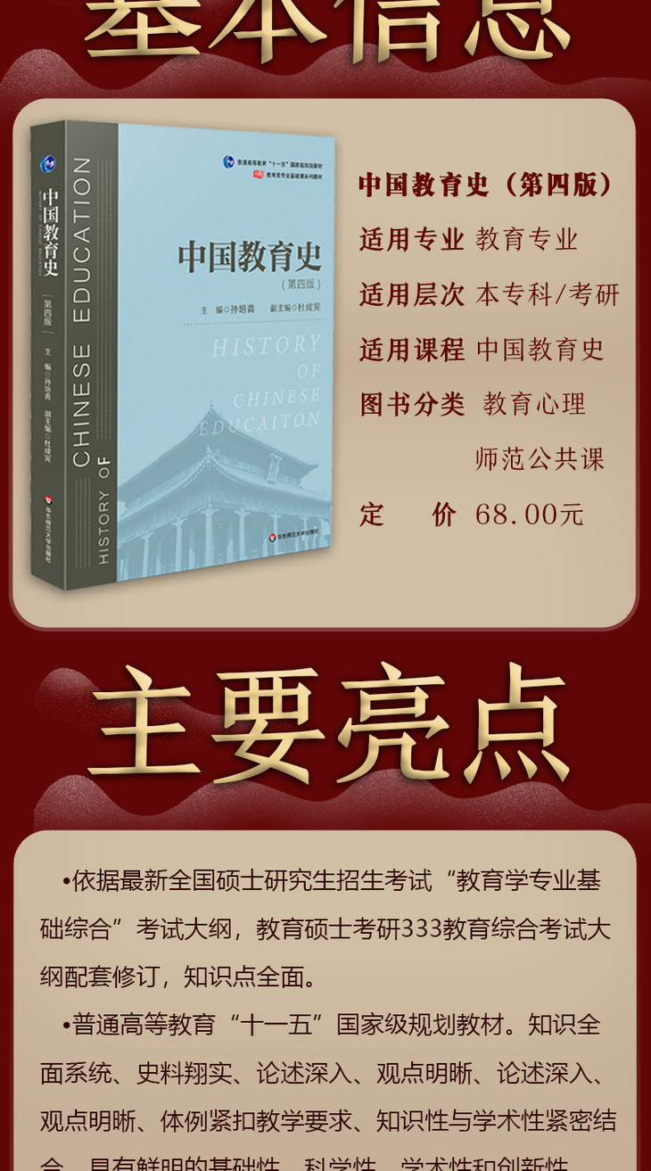 中国教育史 第四版 孙培青 华东师范大学出版社 教育类专业考研经典师范专业教材 311教育学专业基础综合 333教育综合