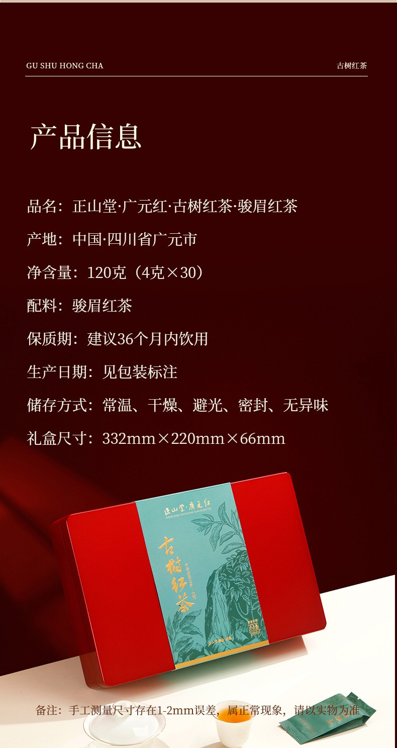 正山堂 广元红古树红茶礼盒装 四川特级正宗红茶茶叶送礼长辈120g