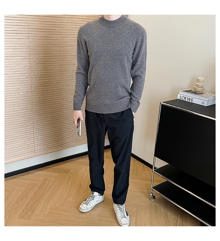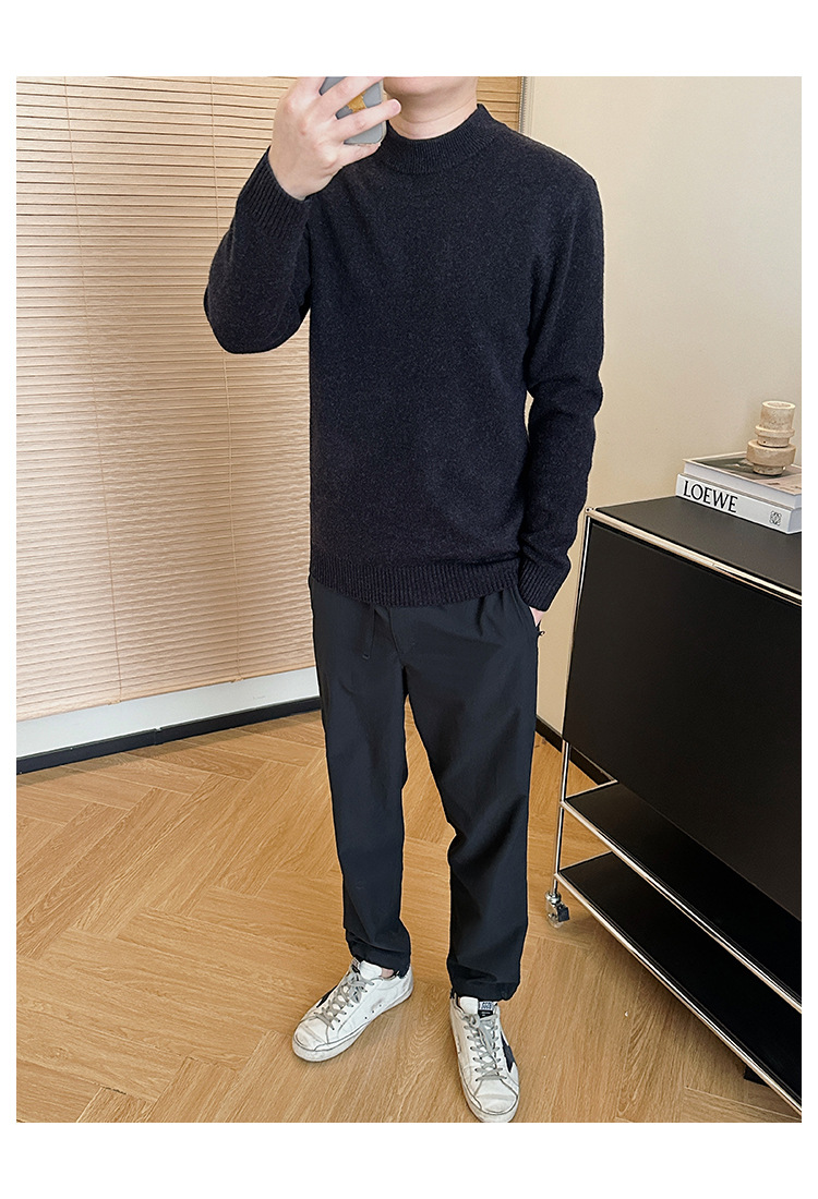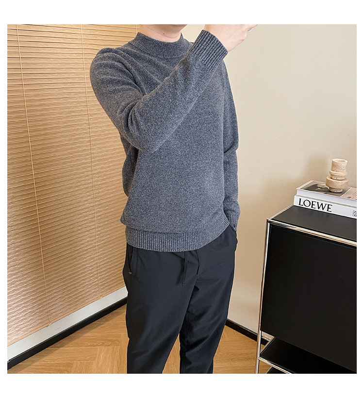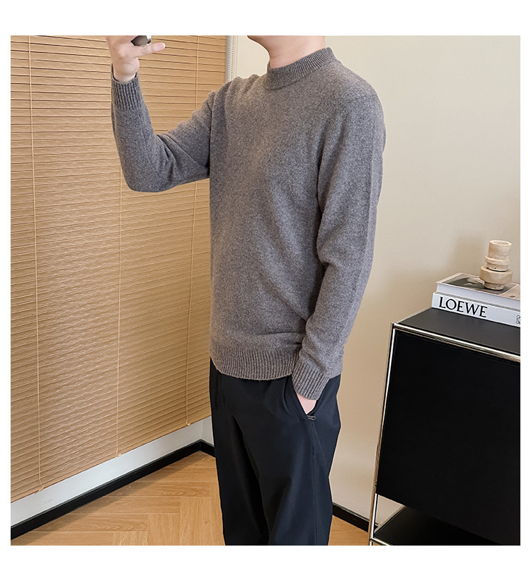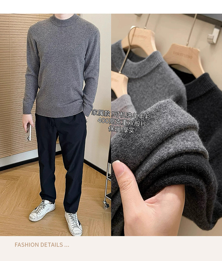 可机洗!全羊毛经典螺纹男士针织衫冬季圆领长袖保暖毛衣秋冬款!