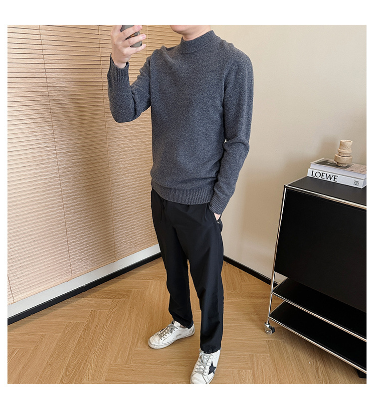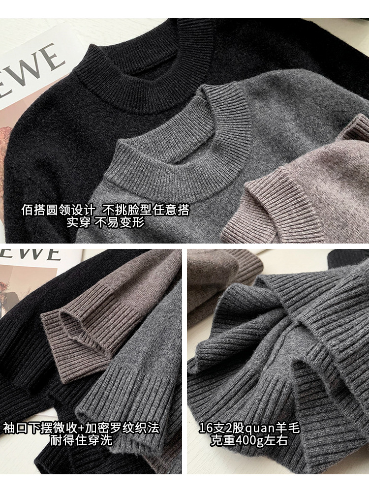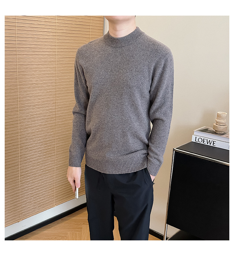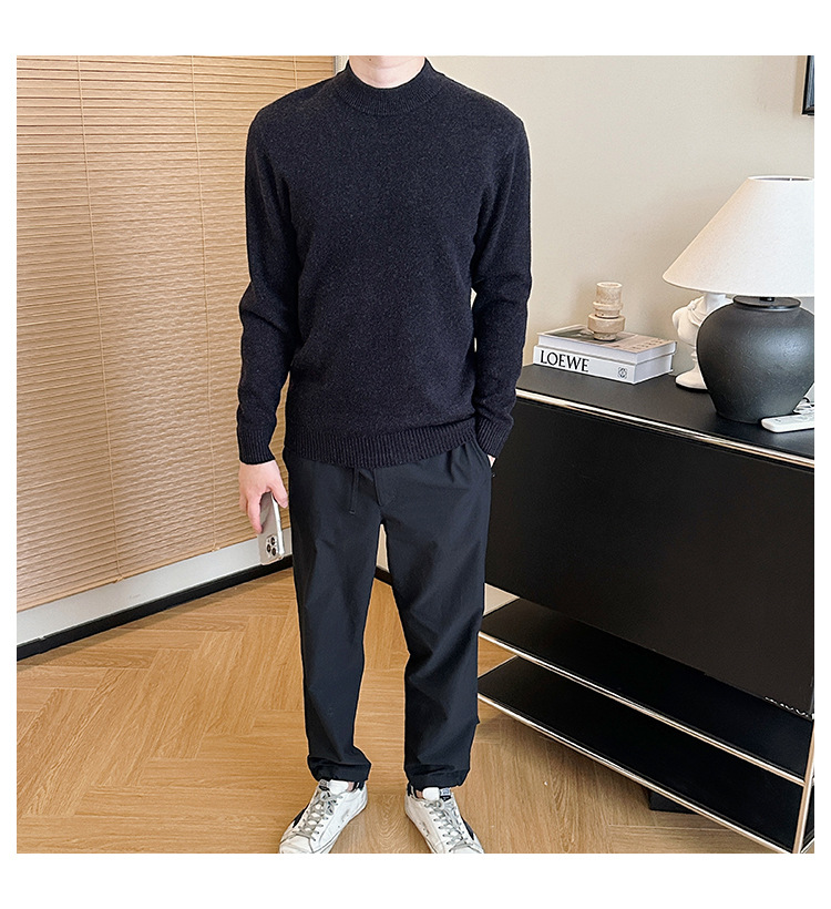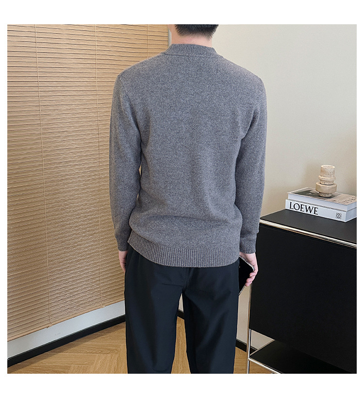 可机洗!全羊毛经典螺纹男士针织衫冬季圆领长袖保暖毛衣秋冬款!