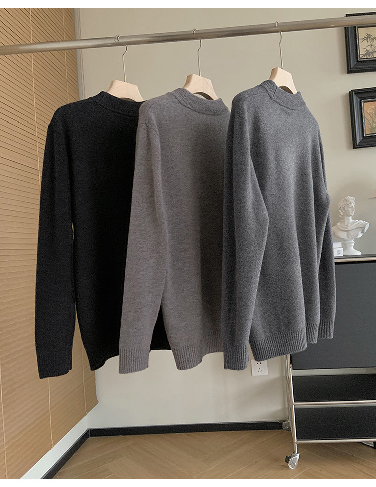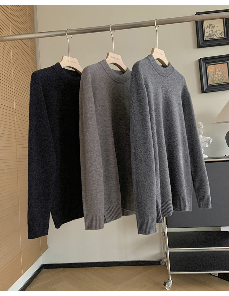 可机洗全羊毛经典基础螺纹圆领男士长袖针织衫! #