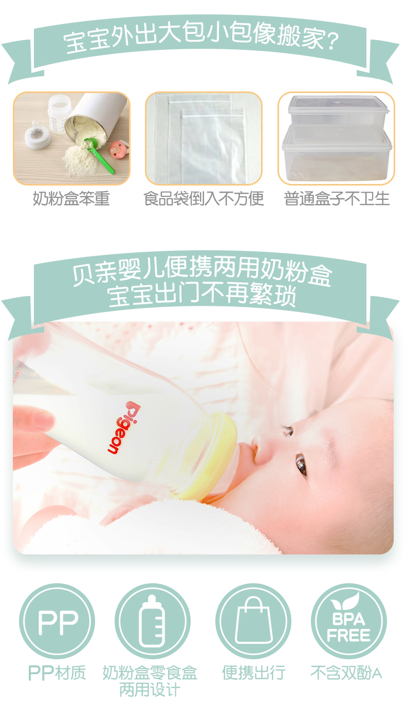 贝亲Pigeon便携两用奶粉盒旋转奶粉盒小巧新生儿密封罐分装盒CA08-CA10