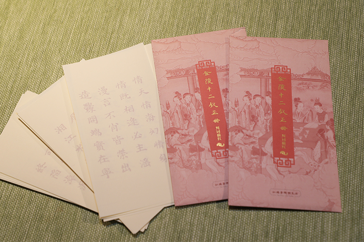 只见那边厨上封条上大书七字云:“金陵十二钗正册”。宝玉问道:“何为‘金陵十二钗正册’?”警幻道:“即贵省中十二冠首女子之册,故为‘正册’。”