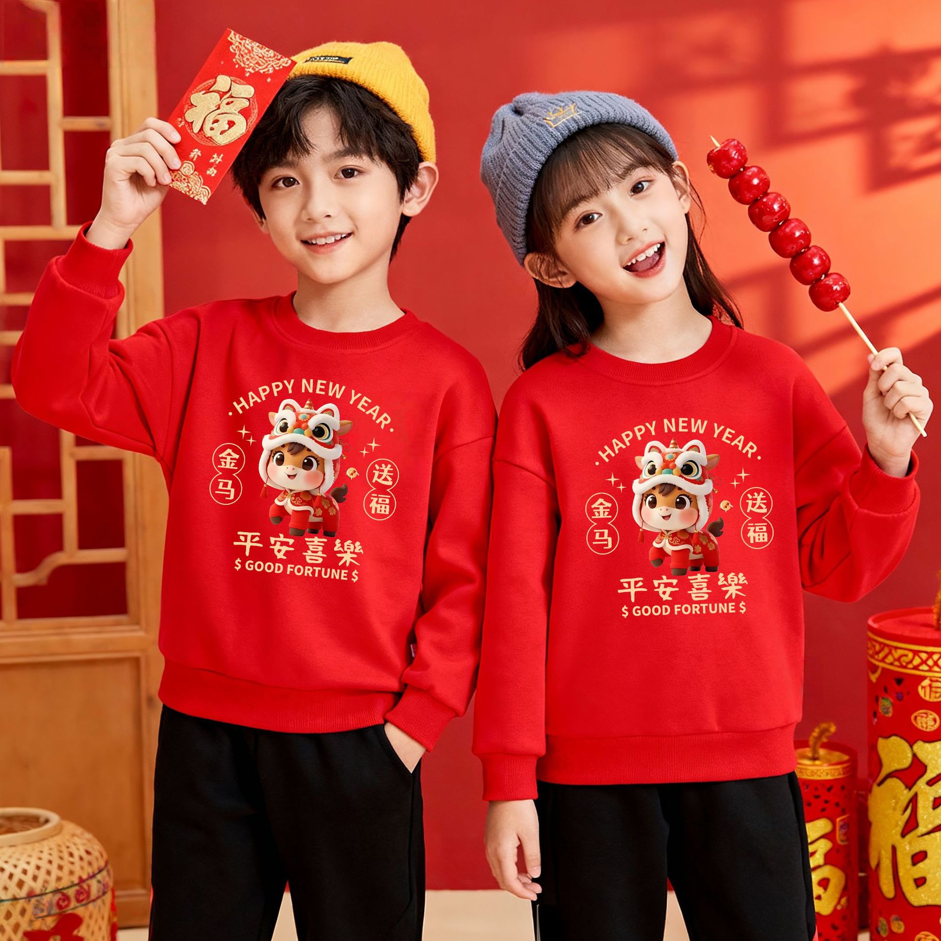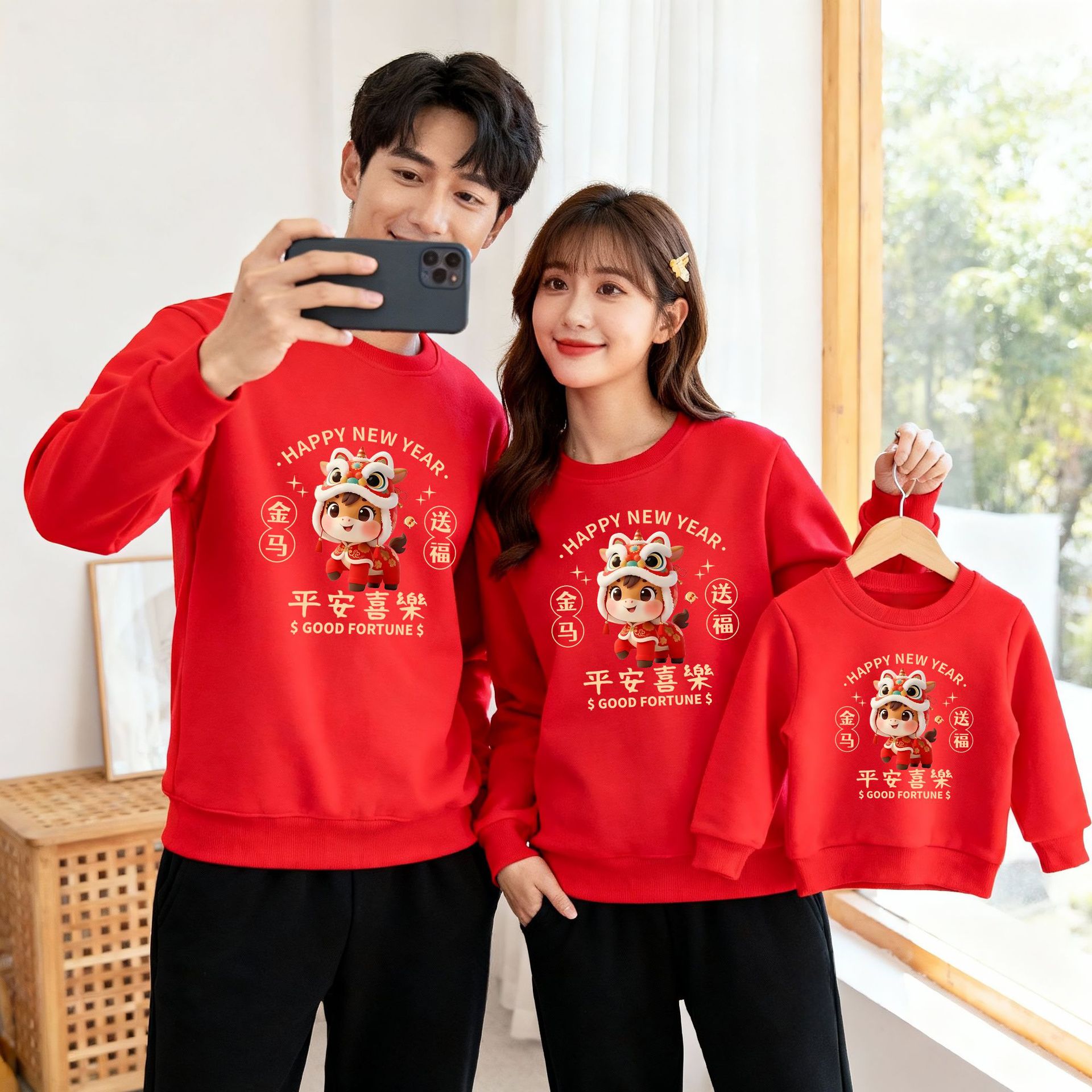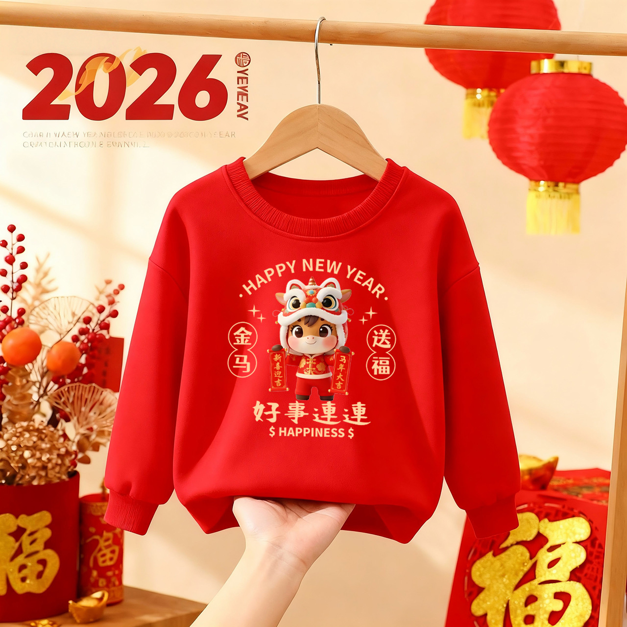 【马年限定❗️中国红喜庆卫衣】红红火火,好运上身,越穿越顺!年服本命年上衣秋冬款加绒保暖过年衣服家庭装