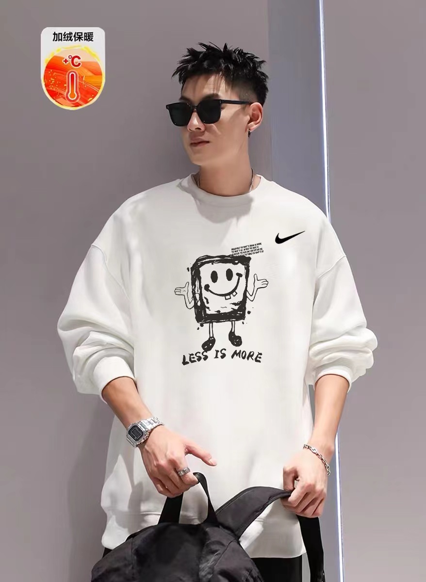【高品质加绒加厚】 Less is more 表情包 抓绒保暖圆领卫衣 男女同款