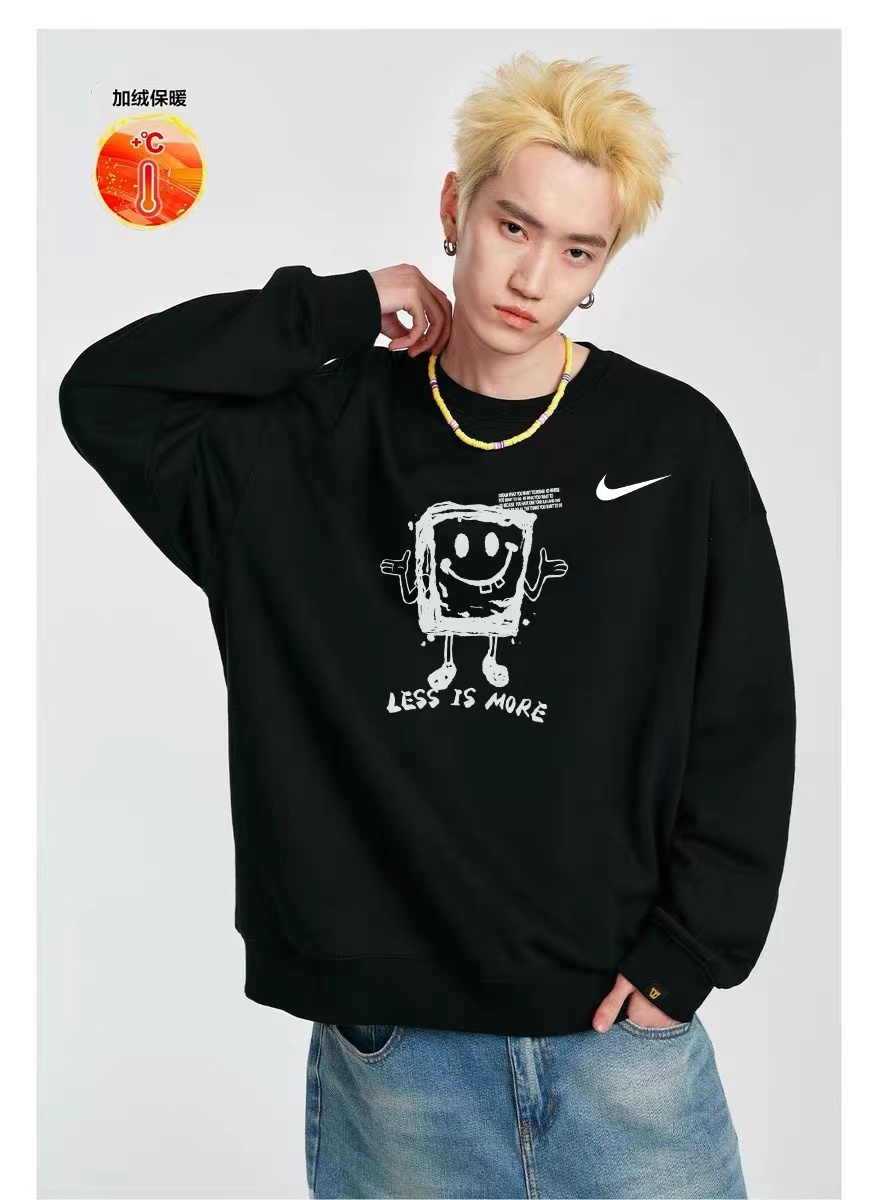 D120419新款Less is more 表情包抓绒保暖圆领卫衣男女同款