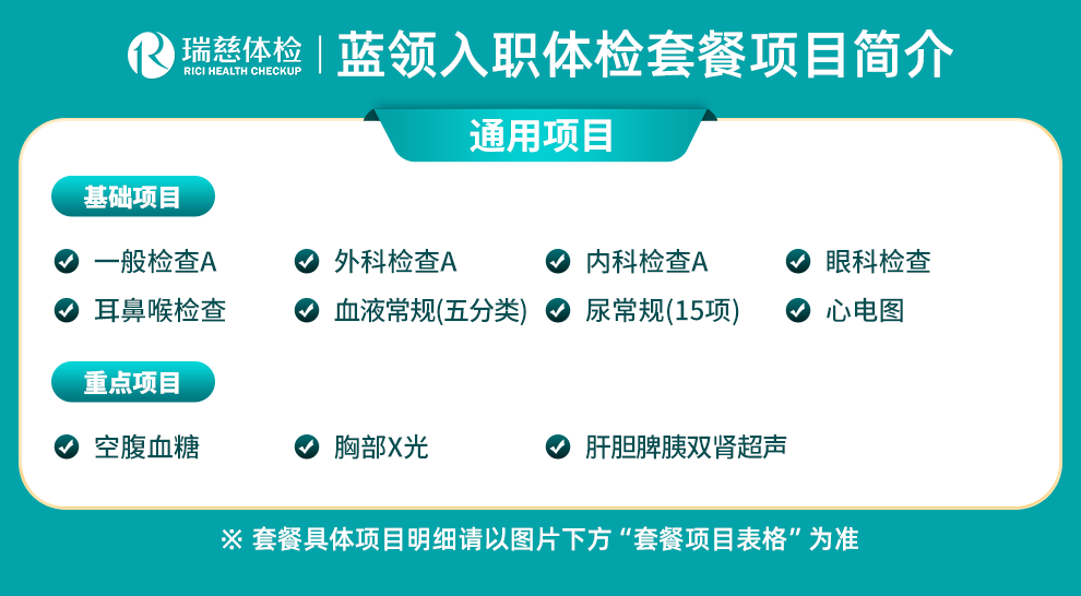 | 套餐名称:蓝领入职体检套餐 | |||||