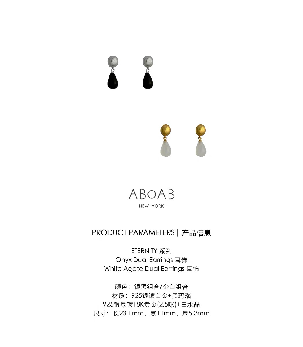 ABOAB|DUAL Earrings [耳环 银黑玛瑙 / 金白水晶 ]【ETERNITY】