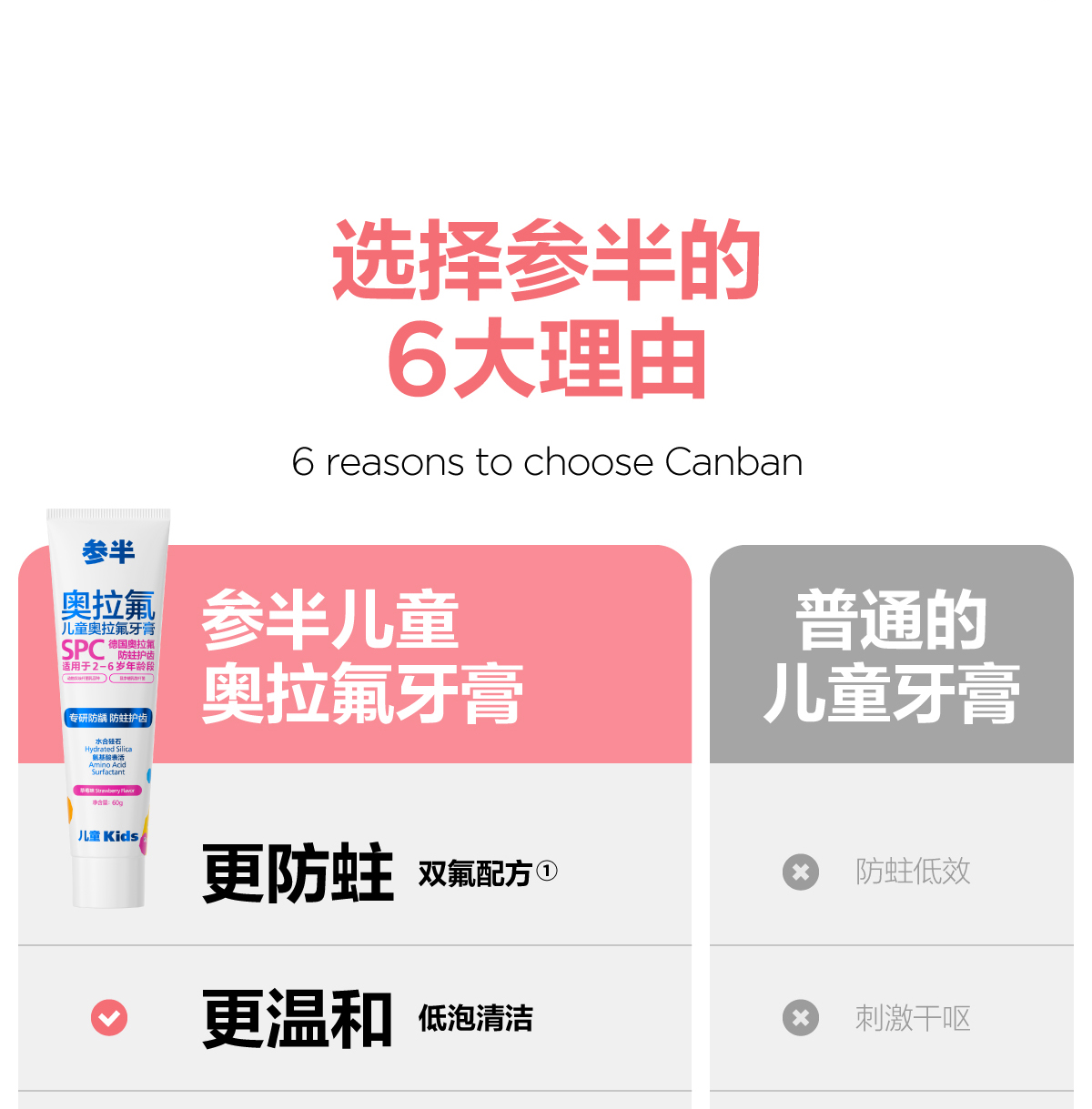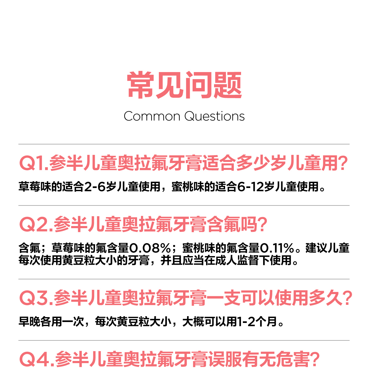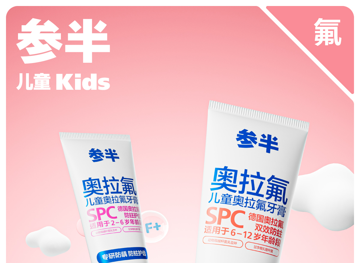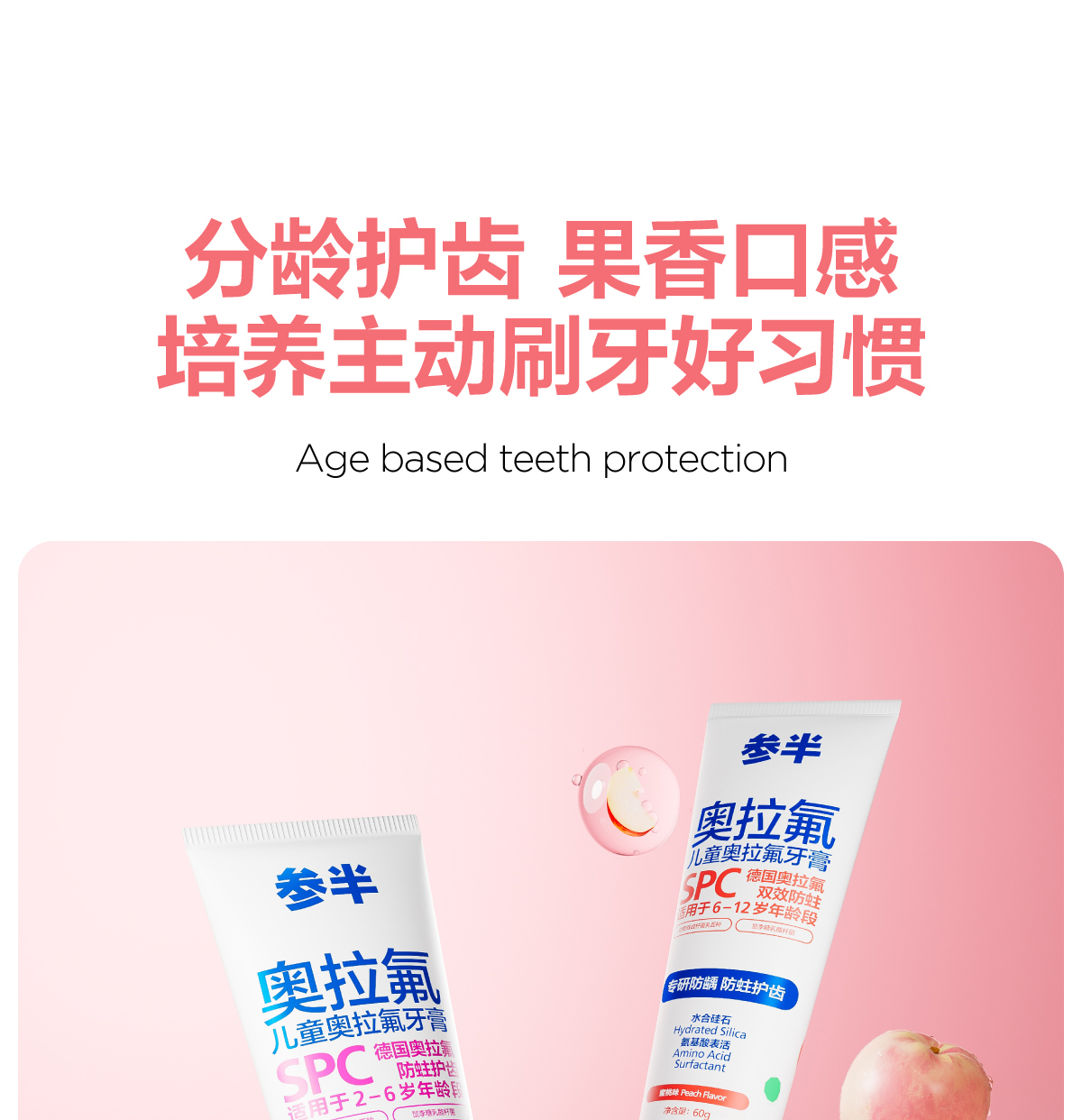 参半儿童牙膏奥拉氟防蛀2-6-12岁低含氟防龋齿宝宝牙膏