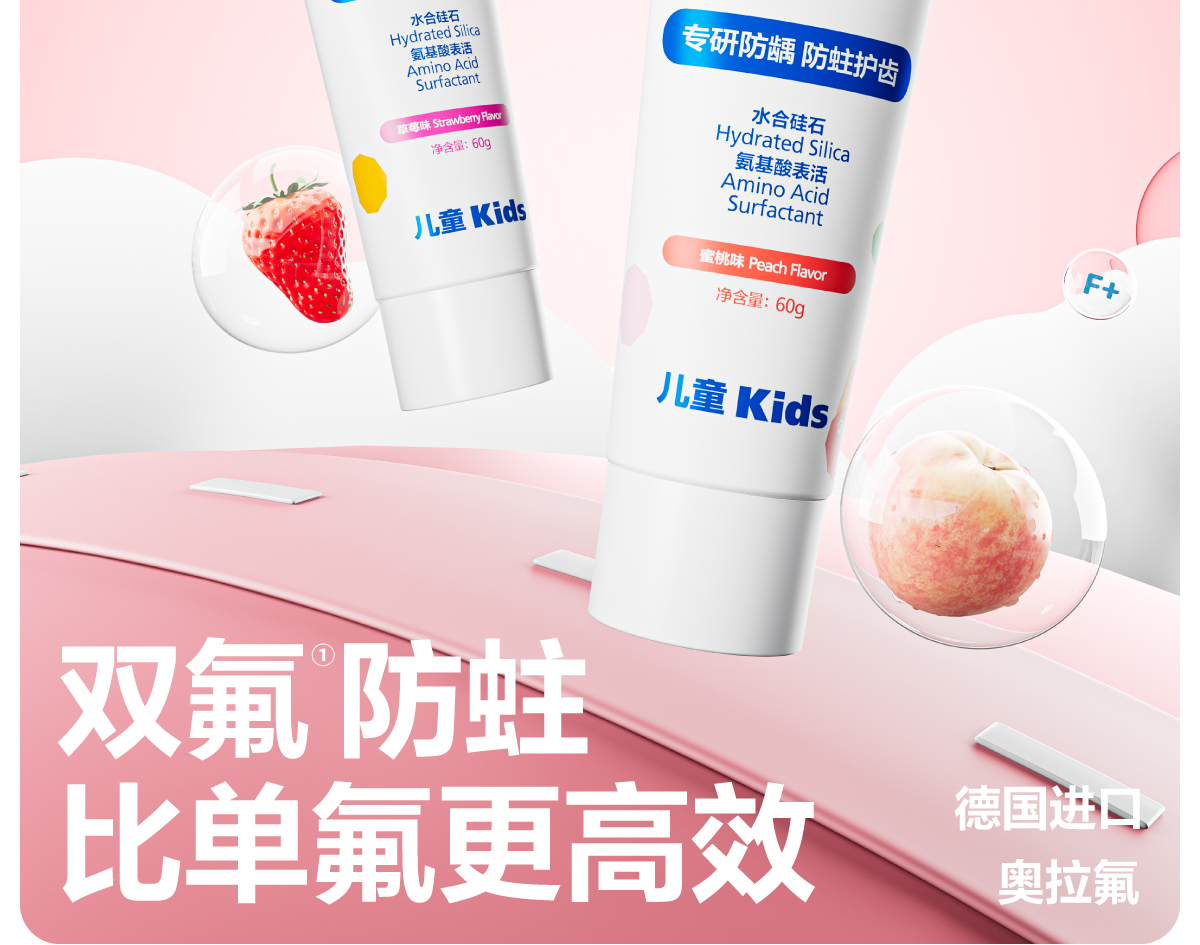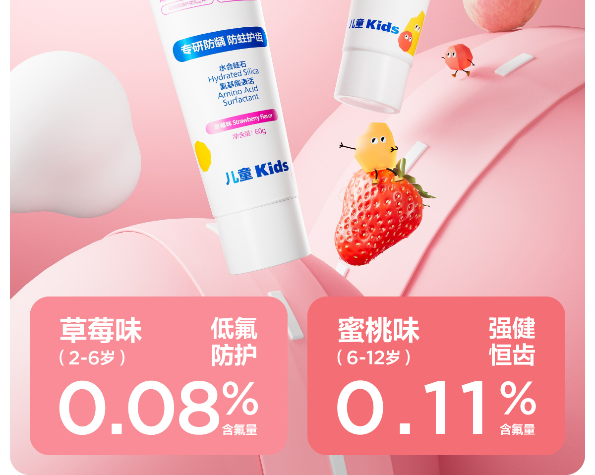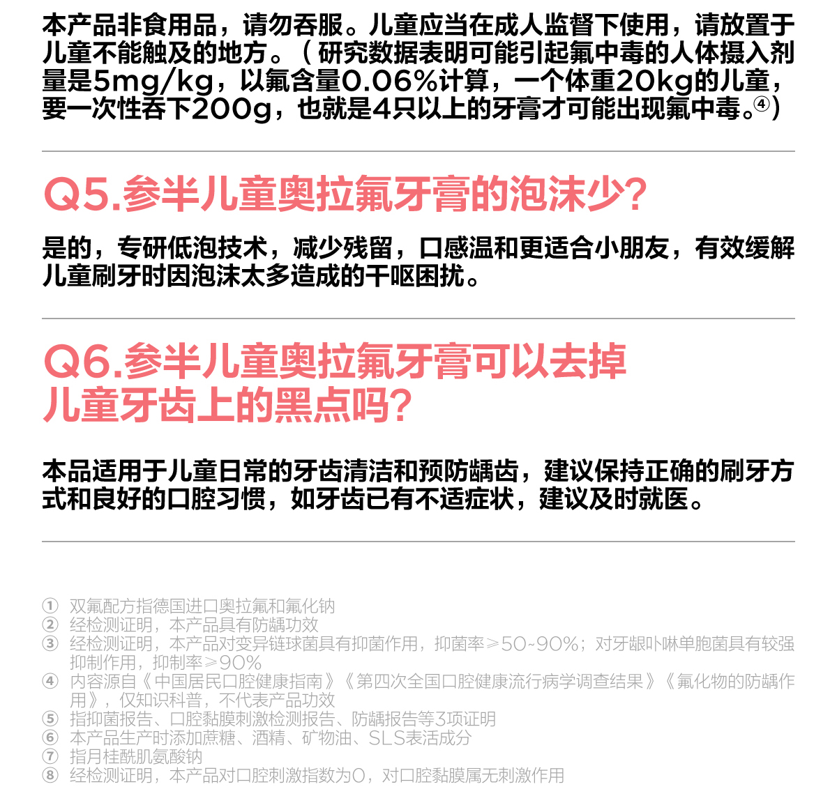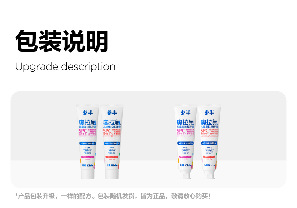 参半儿童牙膏奥拉氟防蛀2-6-12岁低含氟防龋齿宝宝牙膏