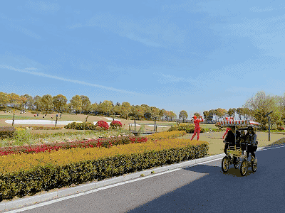 套餐中的自行车租用环岛骑行就在儿童户外乐园的旁边,几步就到了。