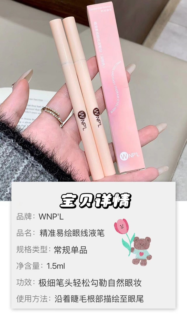 「买1送1!9.9到手两支」WNPL眼线笔防水 不晕妆不晕染极细眼线液笔防汗眼线笔彩妆