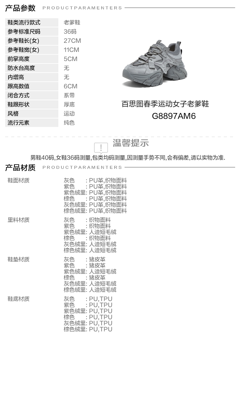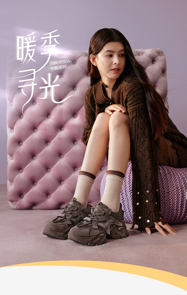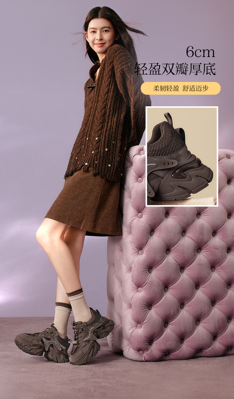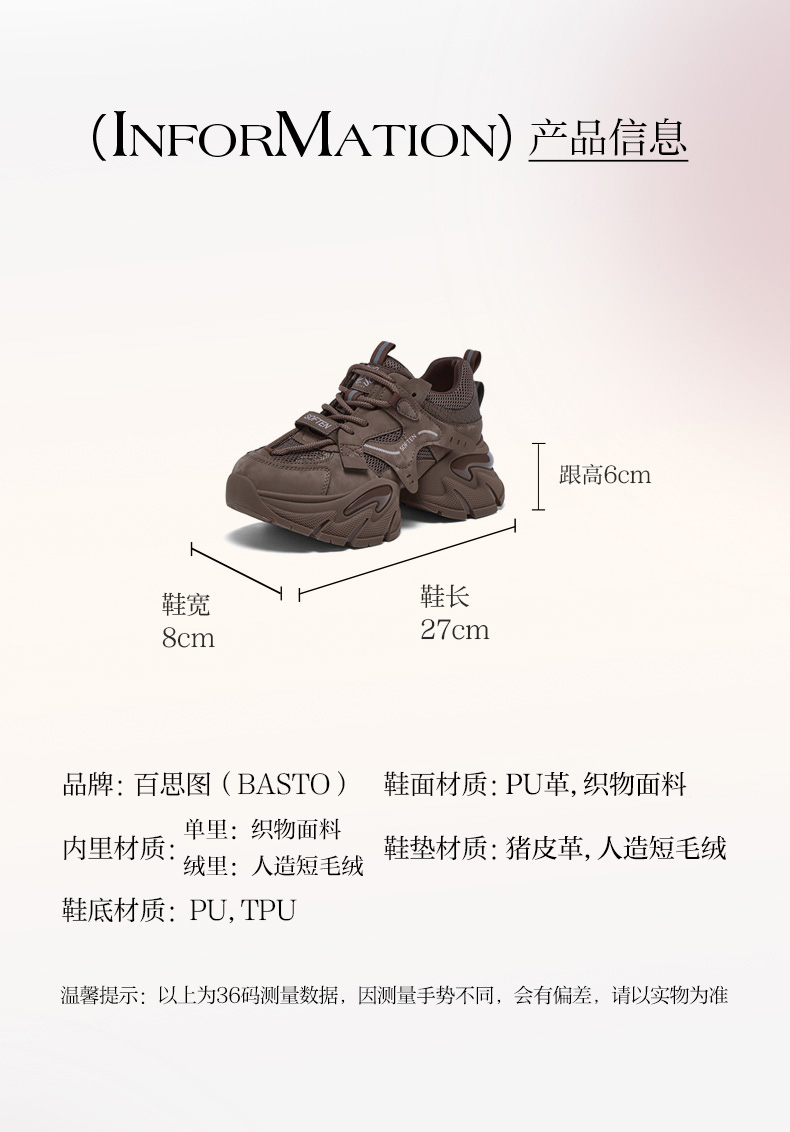 【百思图】BF楼百思图2026春新款加绒保暖老爹鞋厚底增高女运动休闲鞋G8897AM6 吊牌价799.现价299
