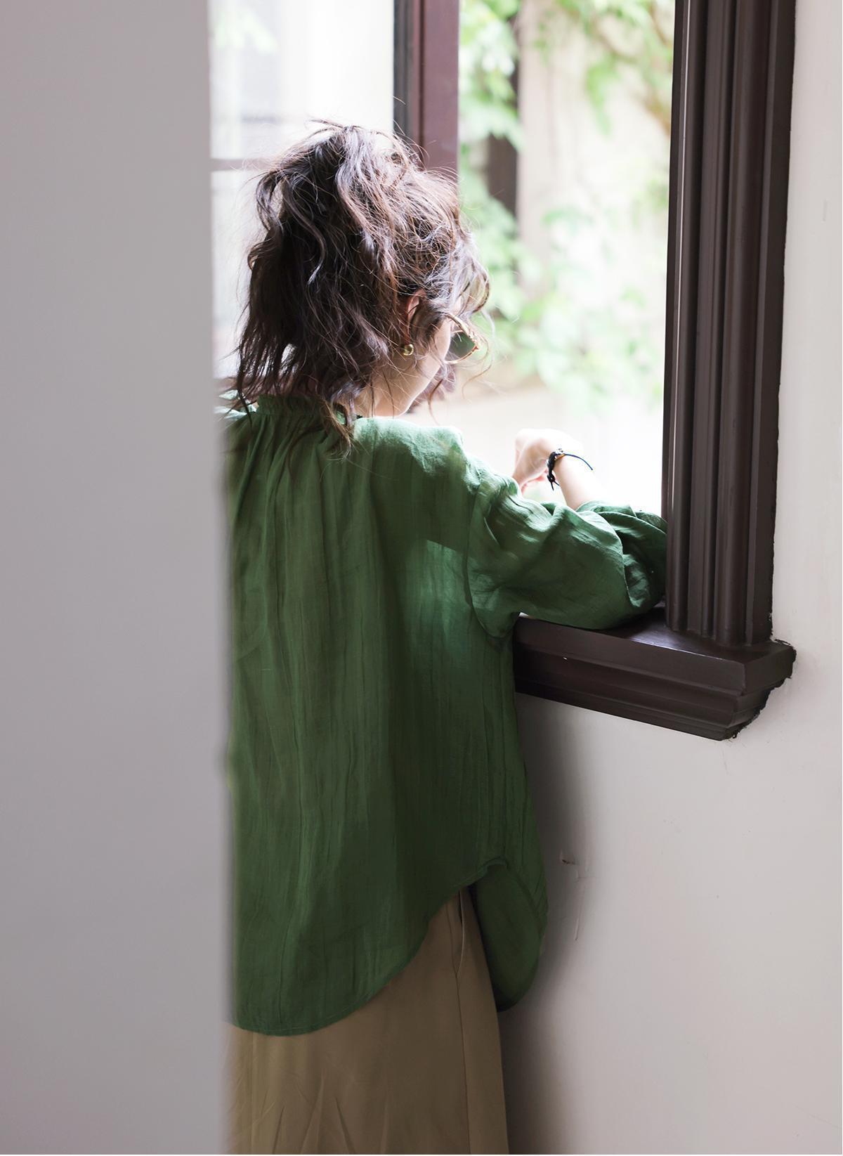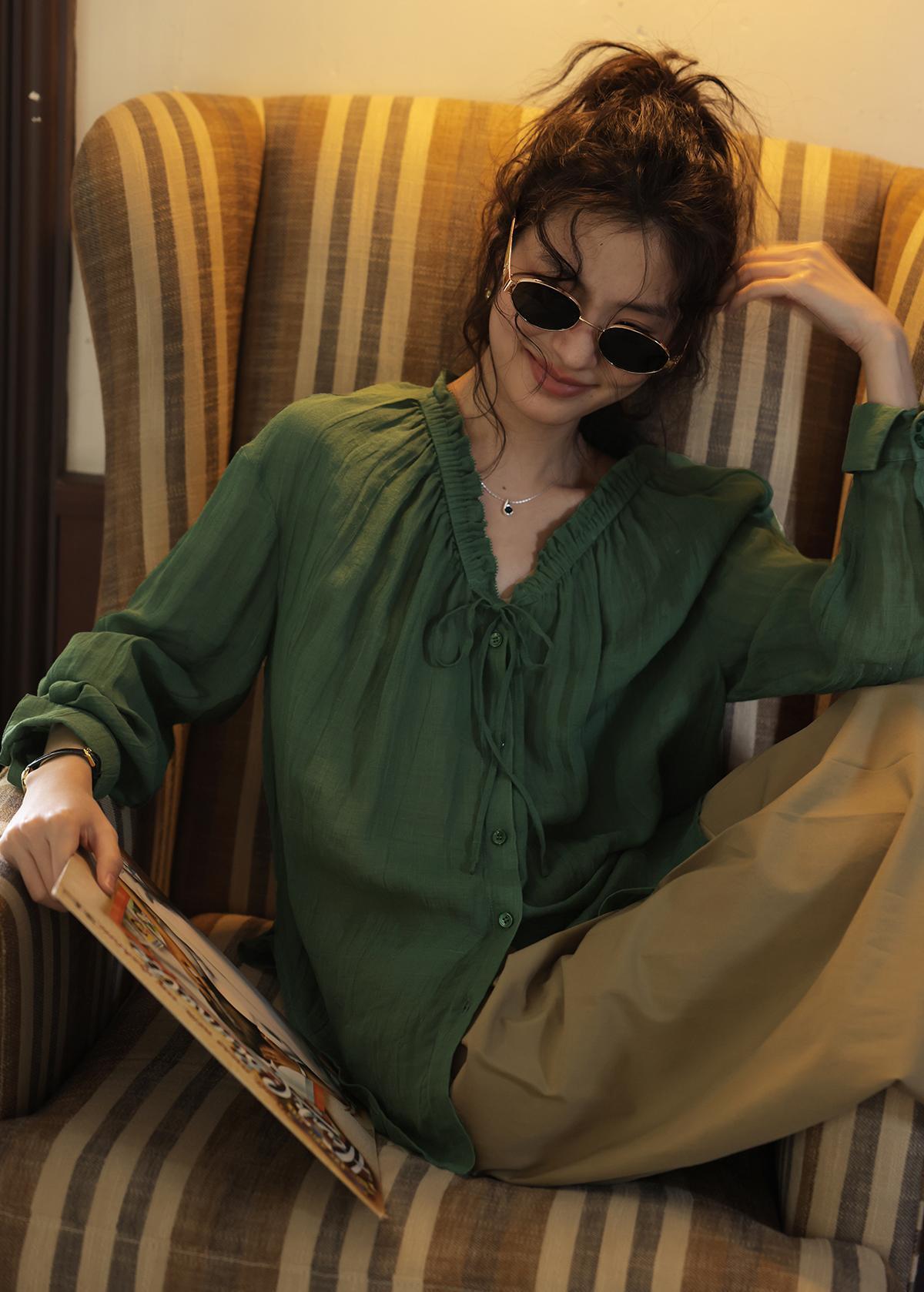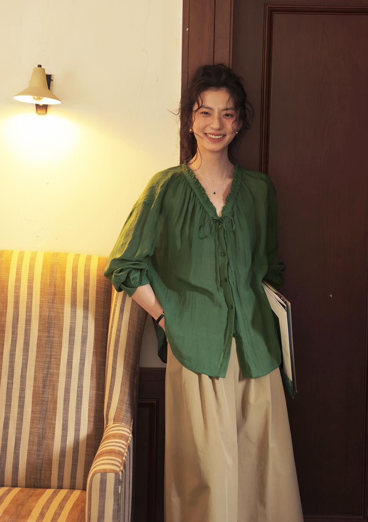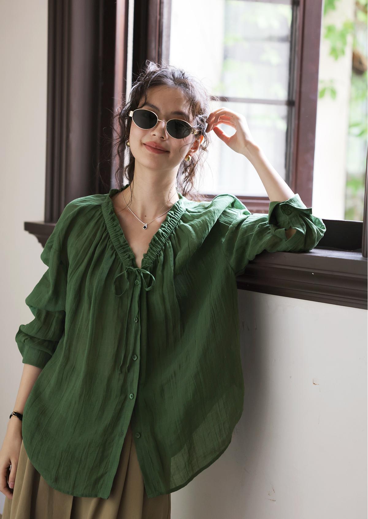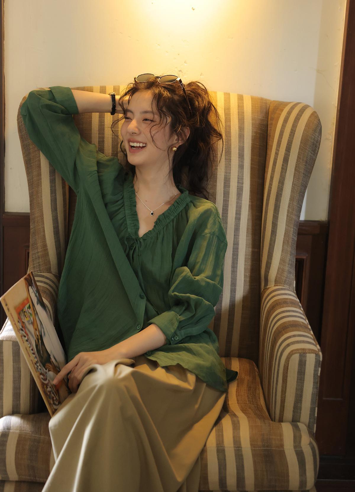 这件森林绿衬衫上身,连夏天的风都变得温柔了!