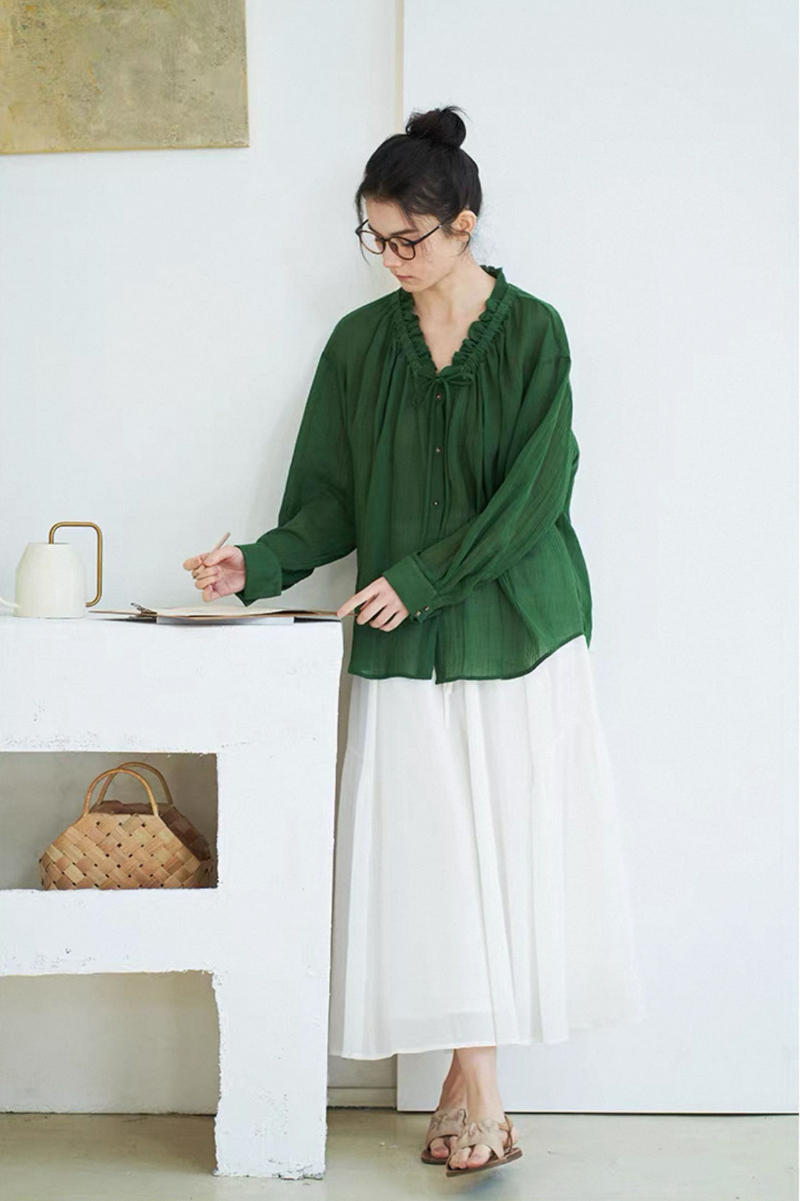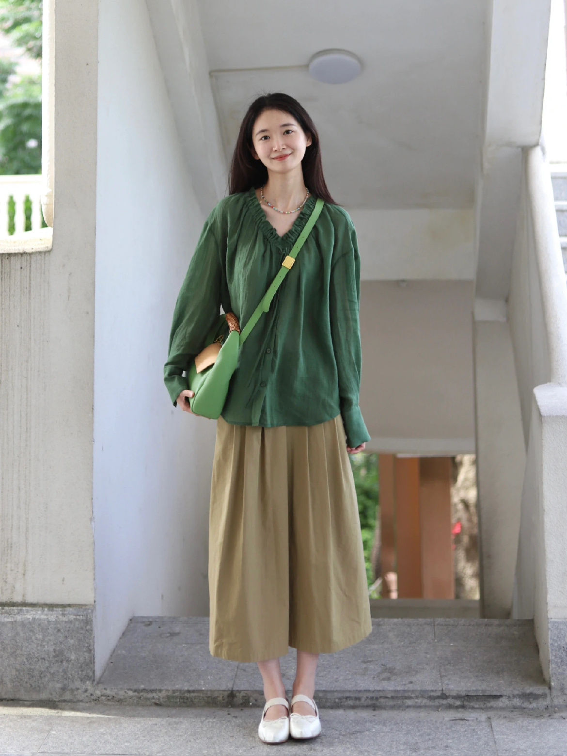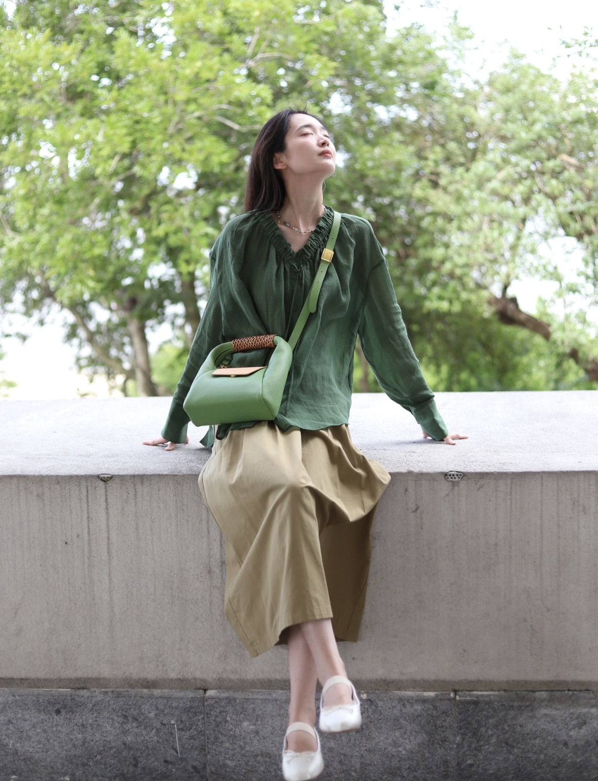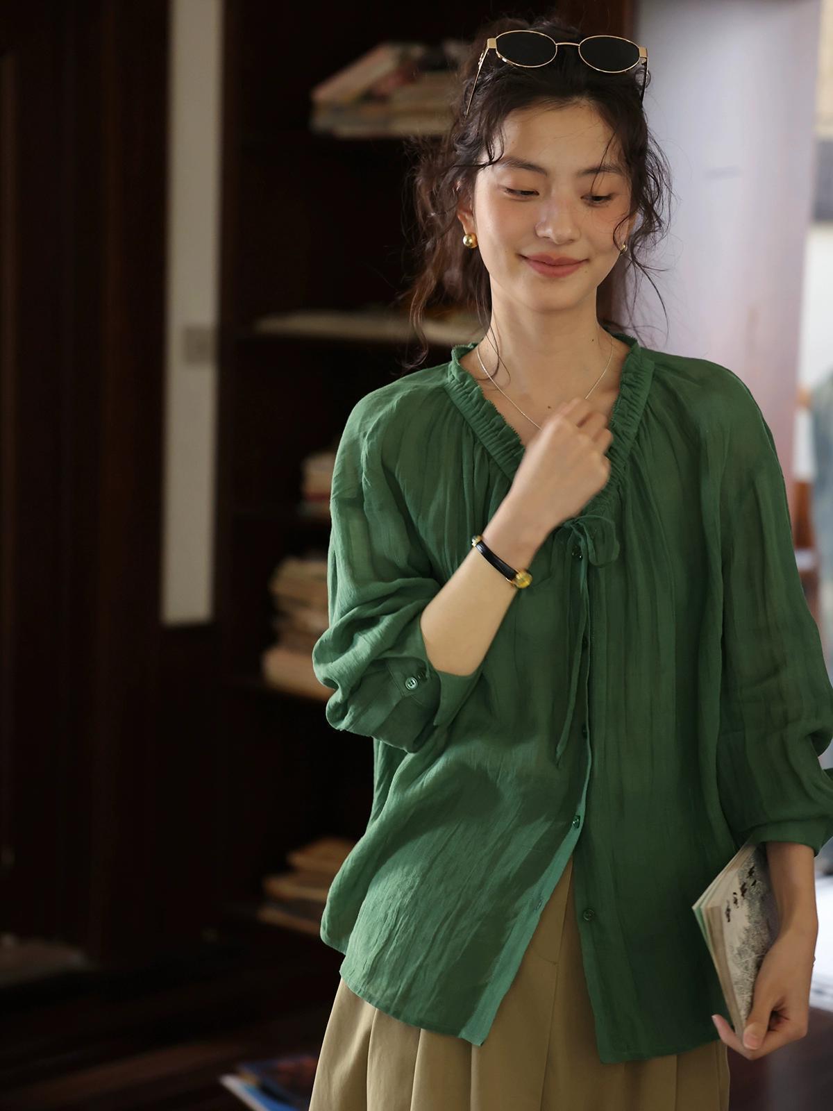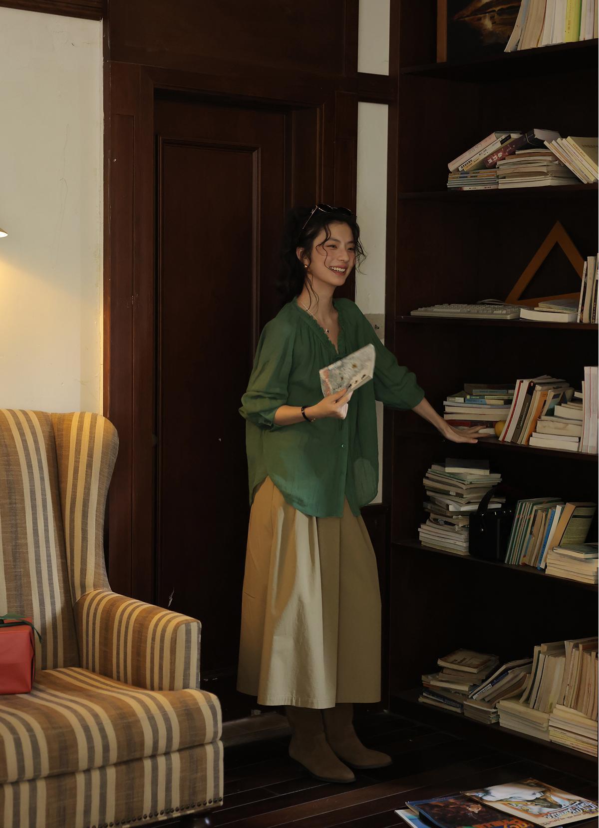 这件森林绿衬衫上身,连夏天的风都变得温柔了!