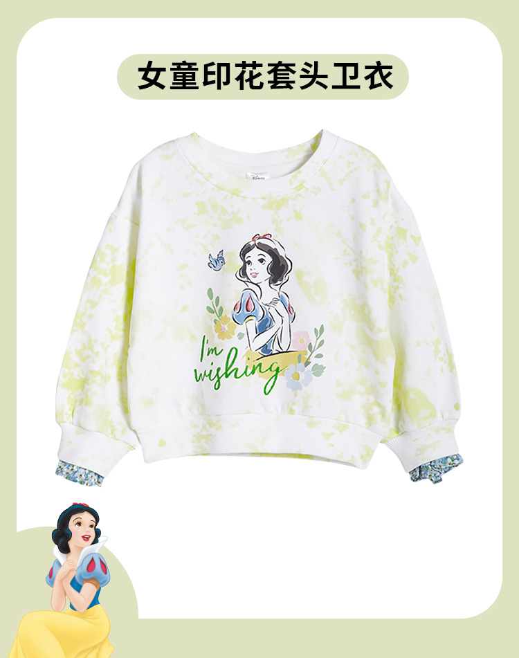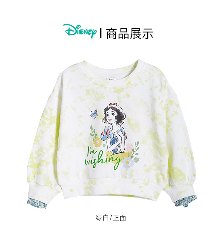 【商场同款】迪士尼童装女童套头卫衣春秋款白雪公主印花上衣假两件袖口小清新221DS0495