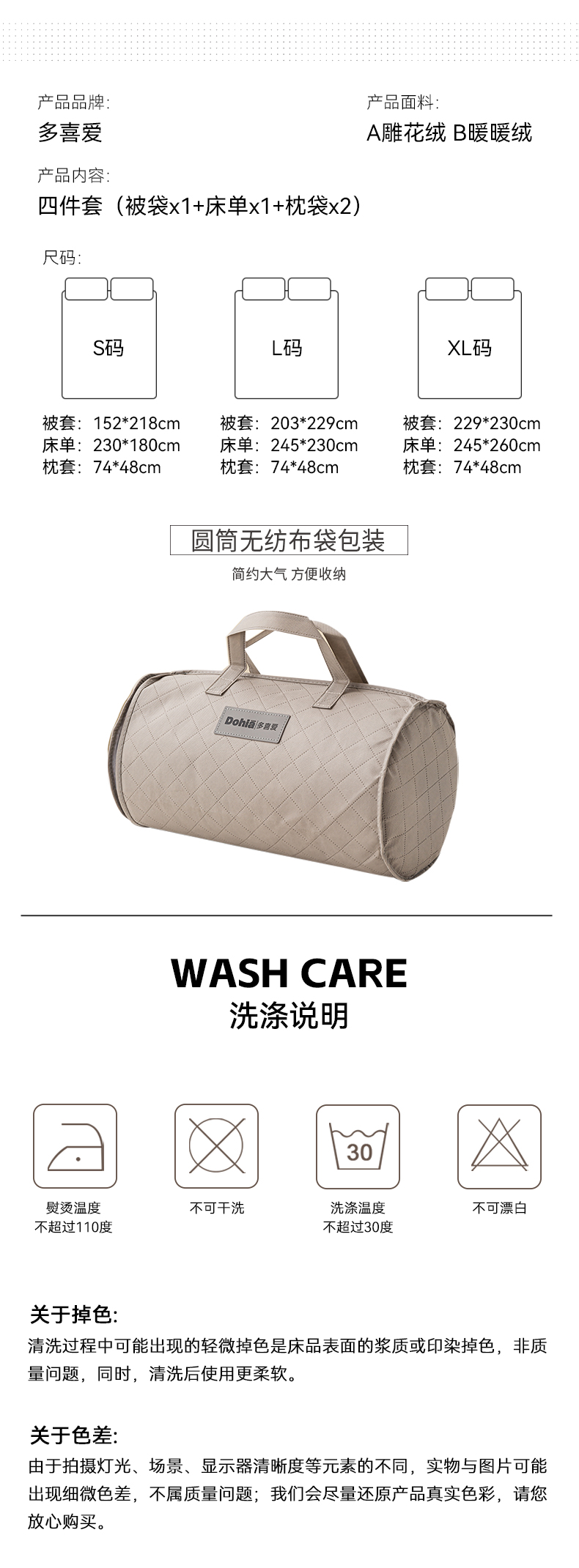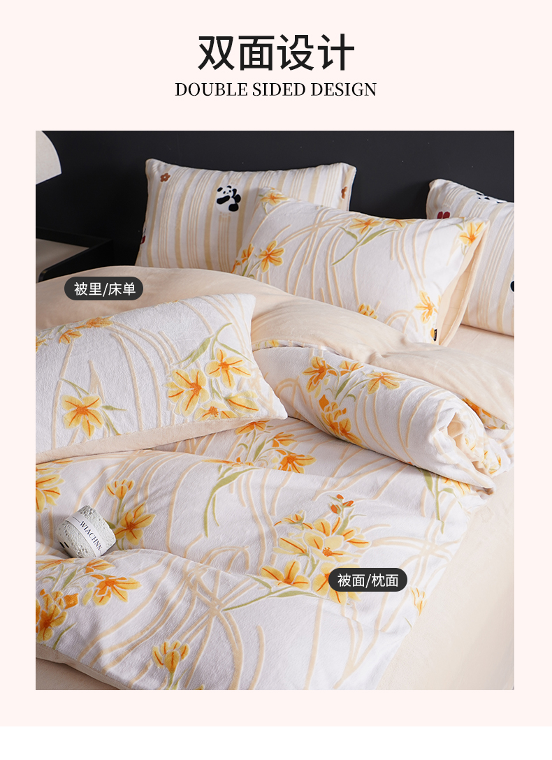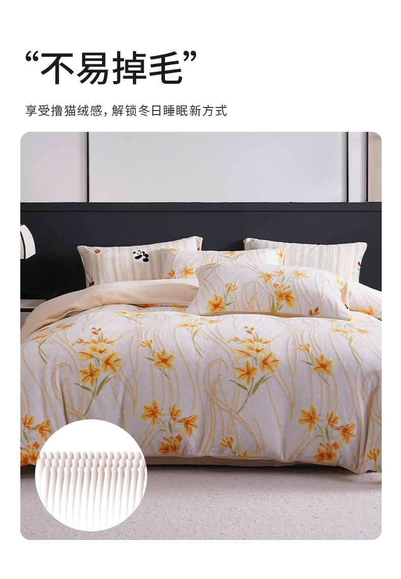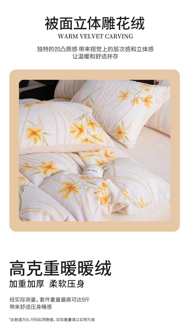 多喜爱 雕花绒套件【不起球 不掉毛】【 A类高克重】【柔软舒适 抗静电】 花倚晴光