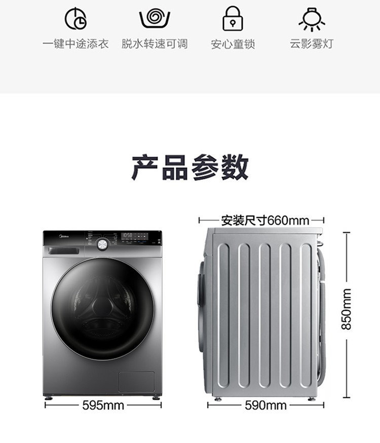【氧气直购节】美的(Midea)2020新品10公斤kg变频滚筒洗衣机东芝DD直驱 蒸汽烘干 KQ5升级 门店同款